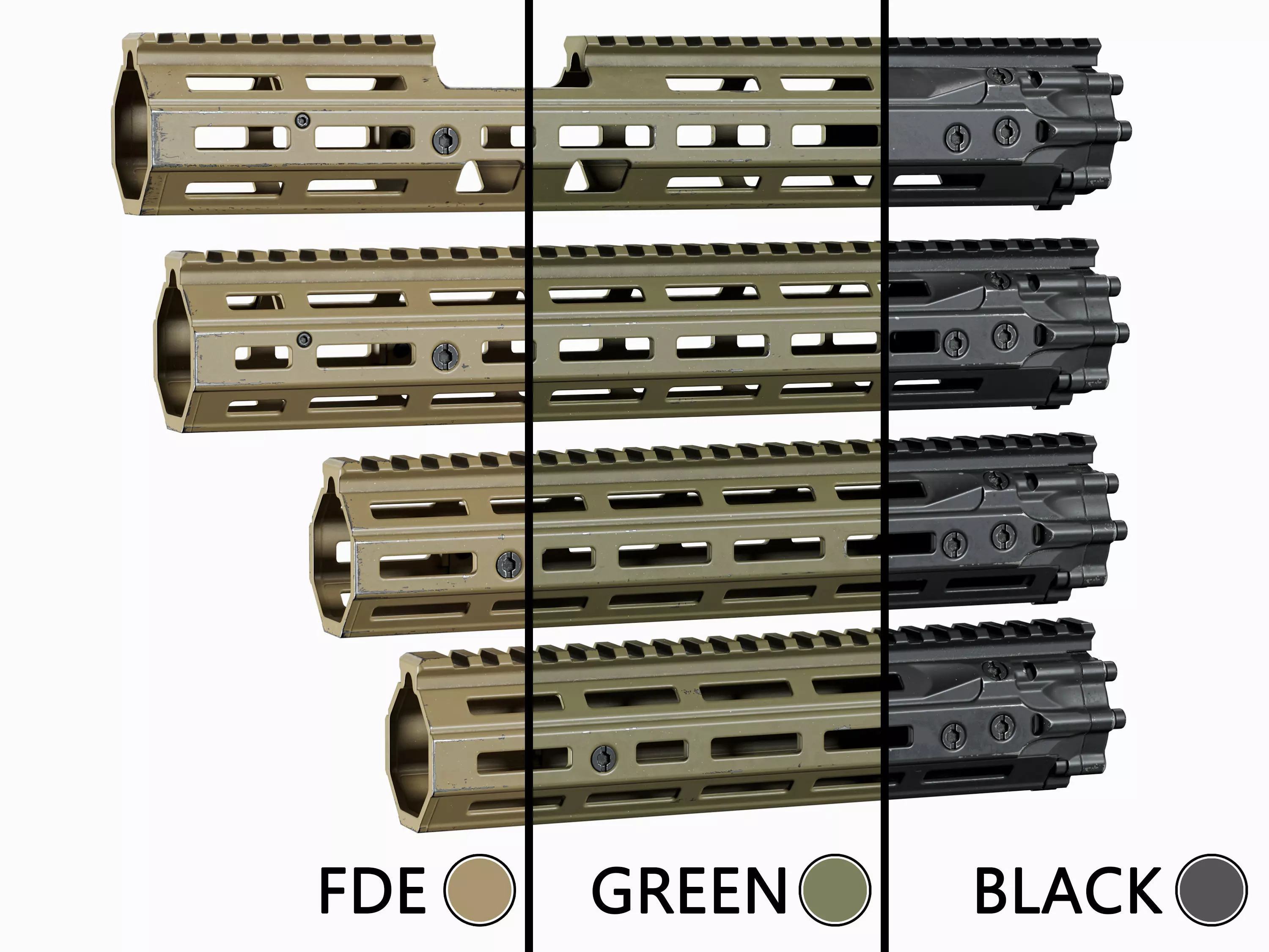 Game-Ready high-quality 3d model Handguards Daniel Defence RIS III for Unreal Engine, Unity and other PBR game engines, renderers, first Person Shooters, VR games, and your other projects.