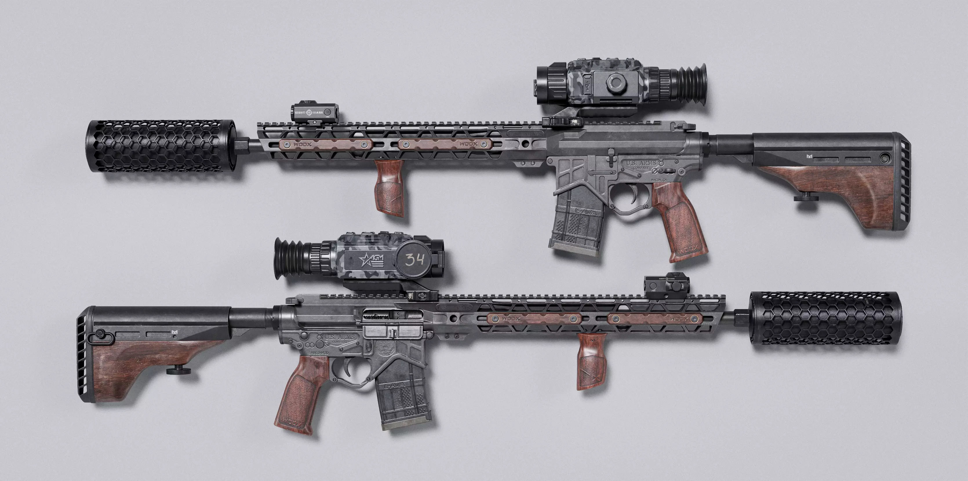 AR 15 US Army and WOOX attachments Low-poly 3D model