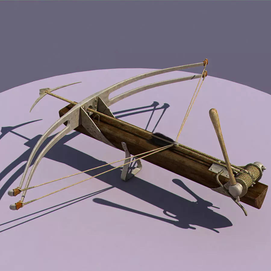 Large medieval bow/arbalet with scythe expander arrows. Utilised by two men in point defence and fortifications.