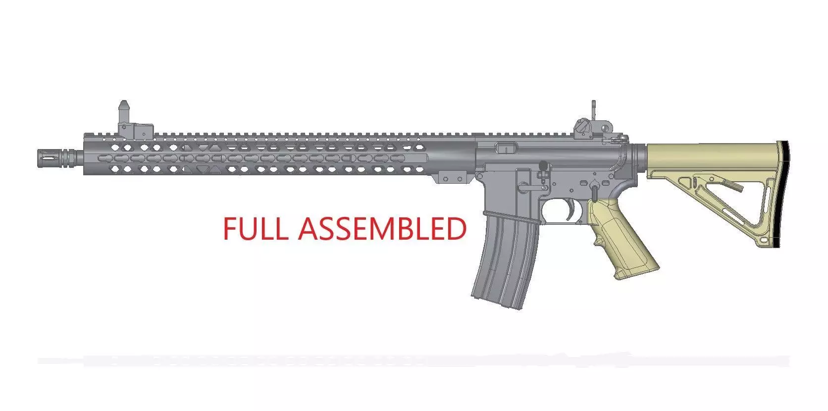 Full assembled model of AR-15 rifle with 30 round mag and 5,56 mm Nato bullet.