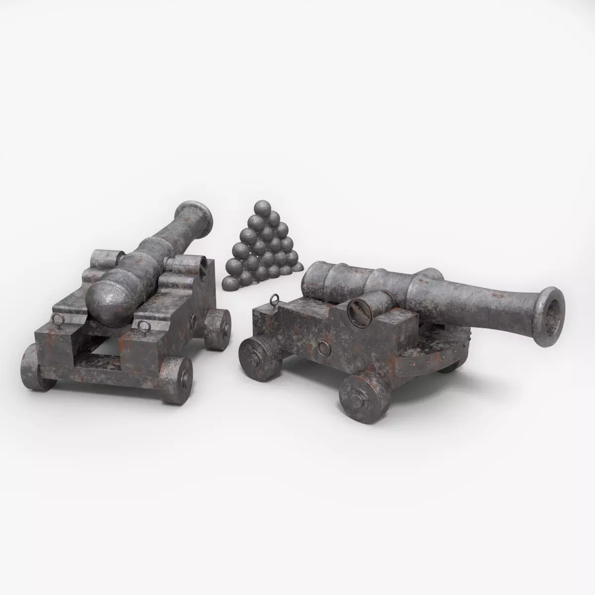 Cannon in high quality for realistic rendersPBR materialsTextures in 4k