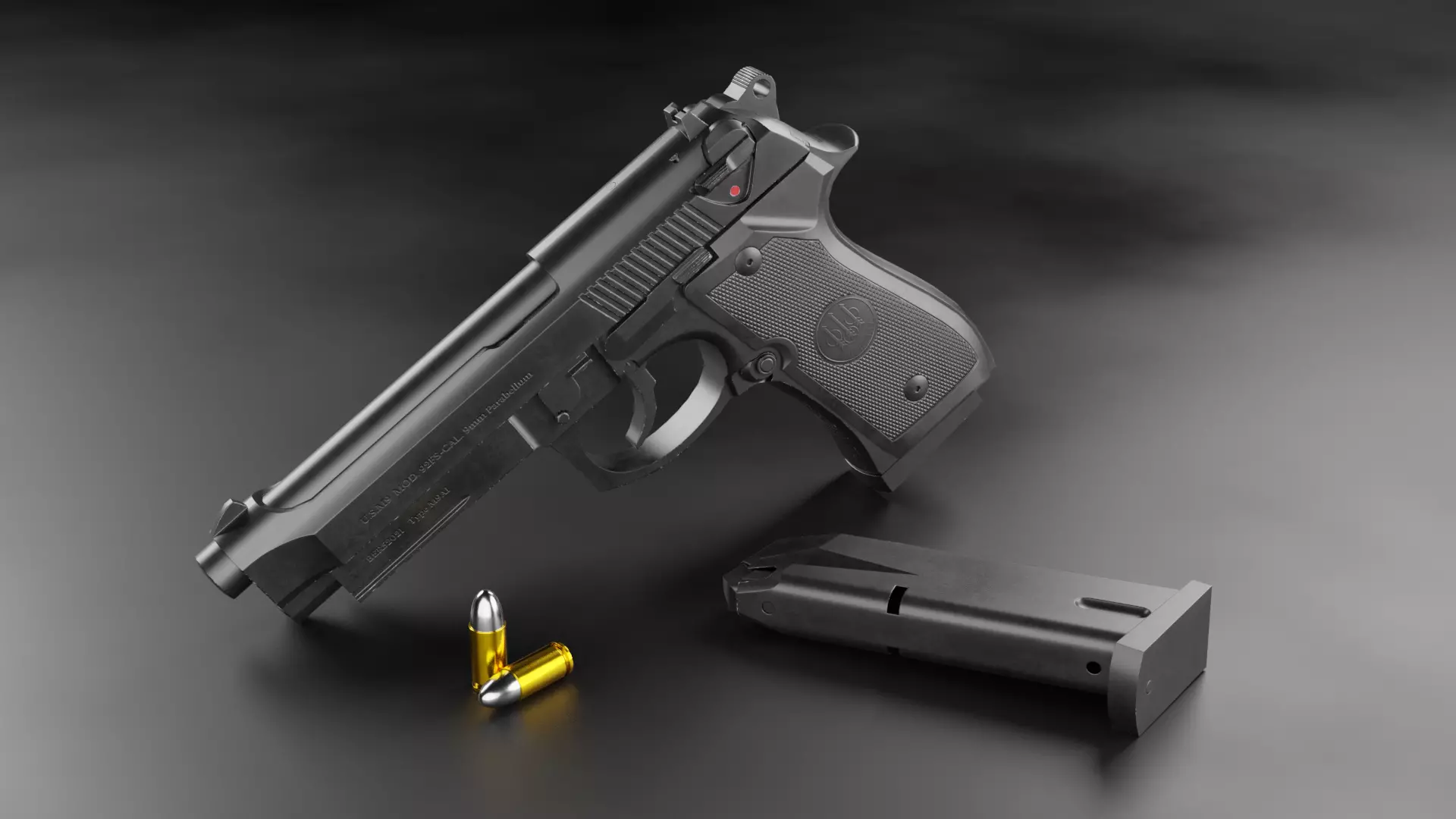 Game ready model of a Beretta M9A1 handgun in 9x19