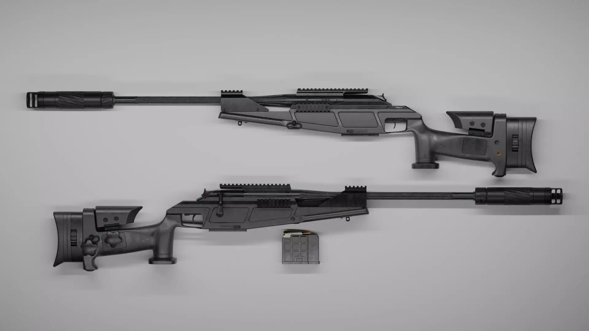 High quality low-poly model Blaser R93 XTEK Tactical 2 Cal .308 Win, created as close as possible to the original with exact dimensions, with highly detailed PBR textures.