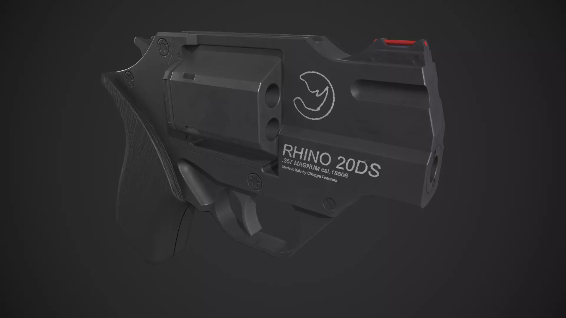 Game-ready Chiappa Rhino 20DS Pistol asset, with PBR textures included in the files. This has 3201 polys (5633 tris) and 2947 vertices.
