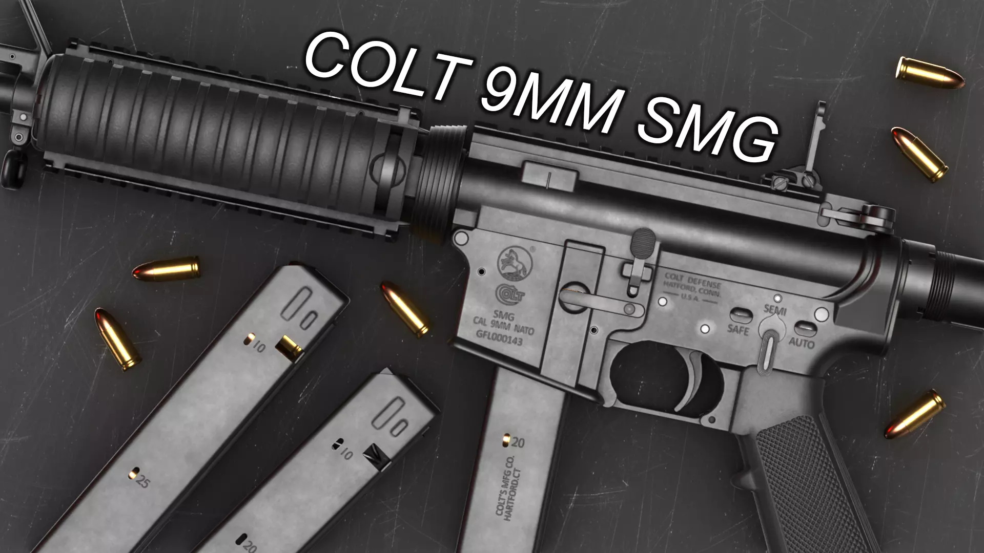 • Colt 9mm SMG (Receiver material can be changed to 3 different variants)