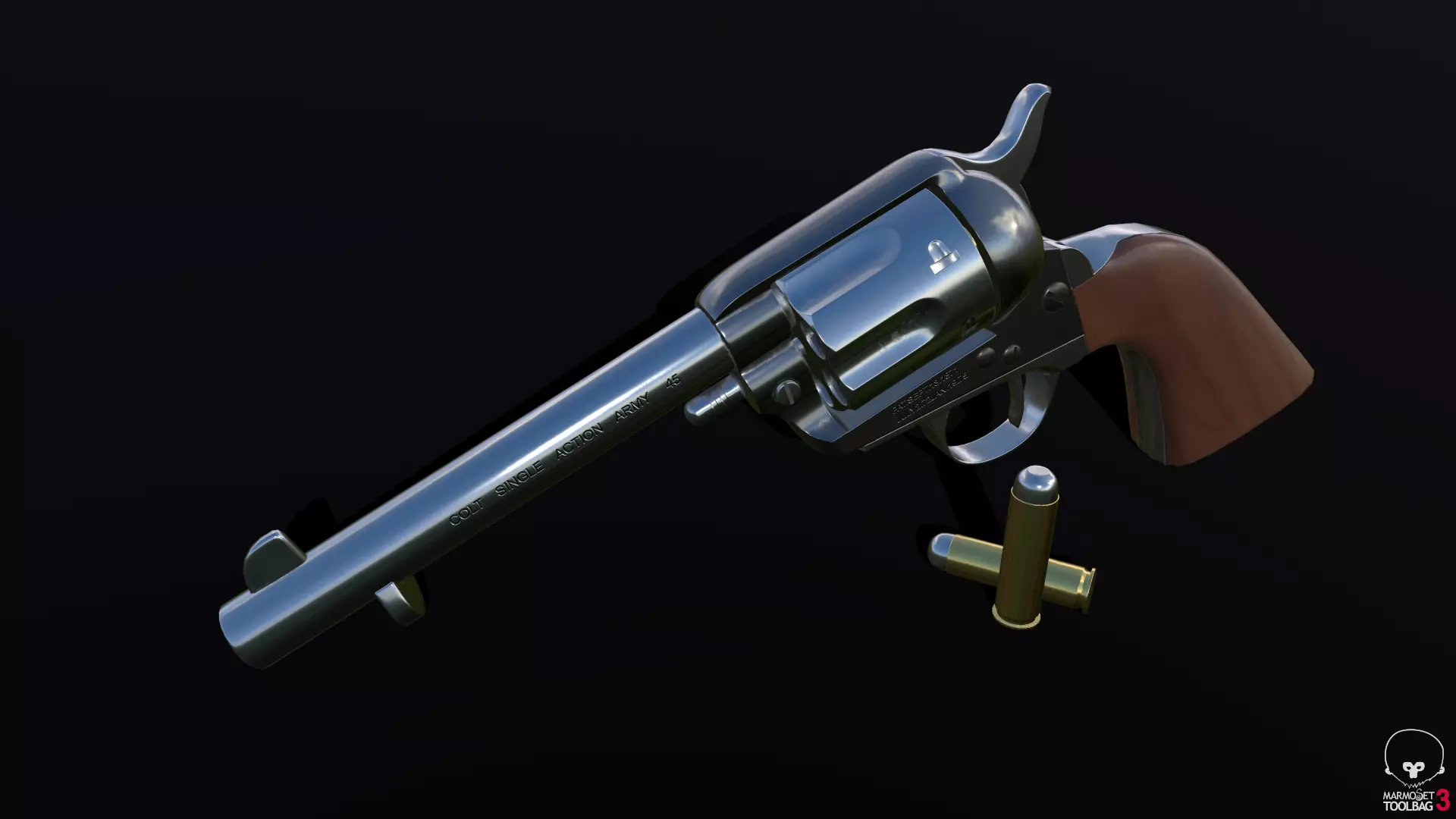 Game ready model of a Colt Peacemaker chambered in Cal. 45 Colt.