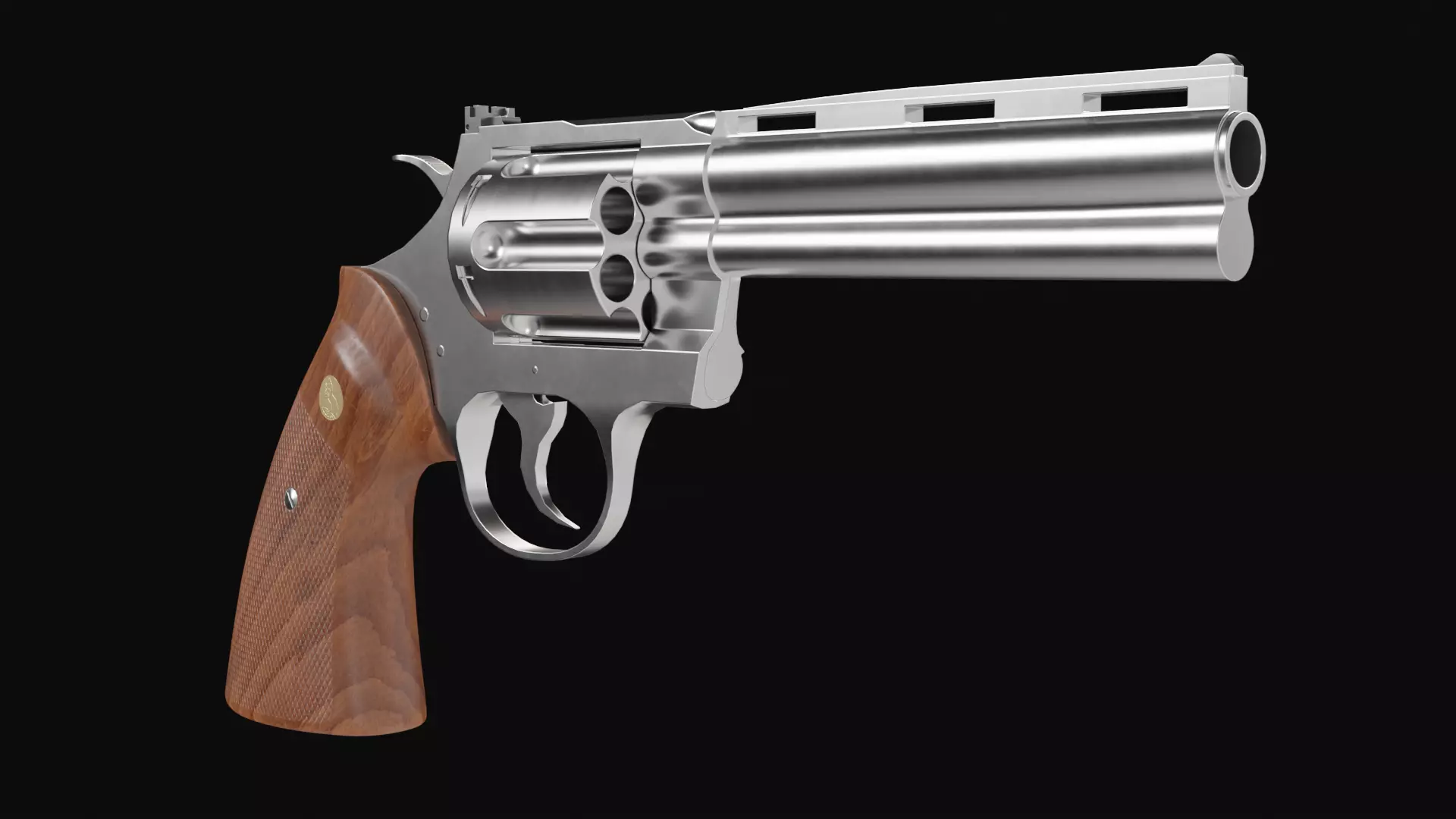 Це 3D-модель револьвера Кольт Пітон. Вона має високу деталізацію та якісні текстури. Ця модель добре оптимізована та підходить для використання в іграх та синематиках. Модель була змодельована в Blender, карти нормалей були запечені в Marmoset, а текстурування проводилося в Substance Painter 3D.