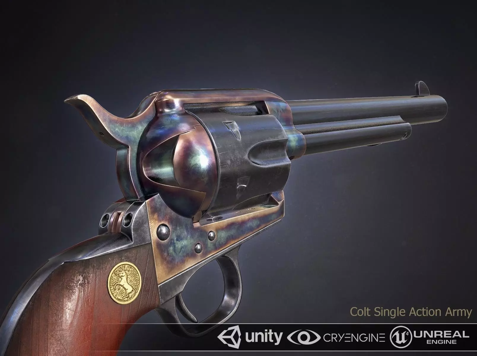 The 3D model Colt Single Action Army was created on real base. It’s created accurately, in real units of measurement (centimeter), qualitatively and maximally close to the original.The intended use for this model and its textures are first person shooters. Polycount is equal to current generation games such as Far Cry or Call of Duty.