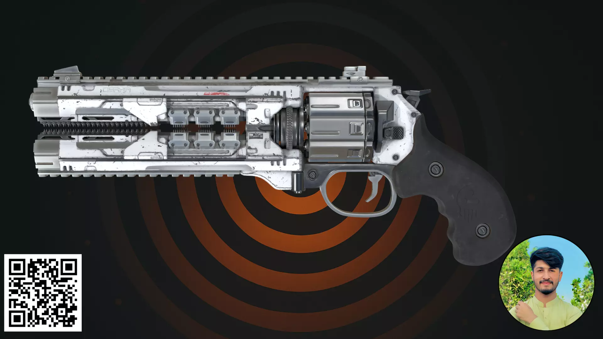 A high-end 3D model of a futuristic Energy Revolver, now featuring the exclusive White Edition skin. This heavy-duty hand cannon combines a classic revolver silhouette with advanced energy-propulsion technology, making it an ideal choice for elite sci-fi soldiers or high-ranking cyberpunk enforcers.