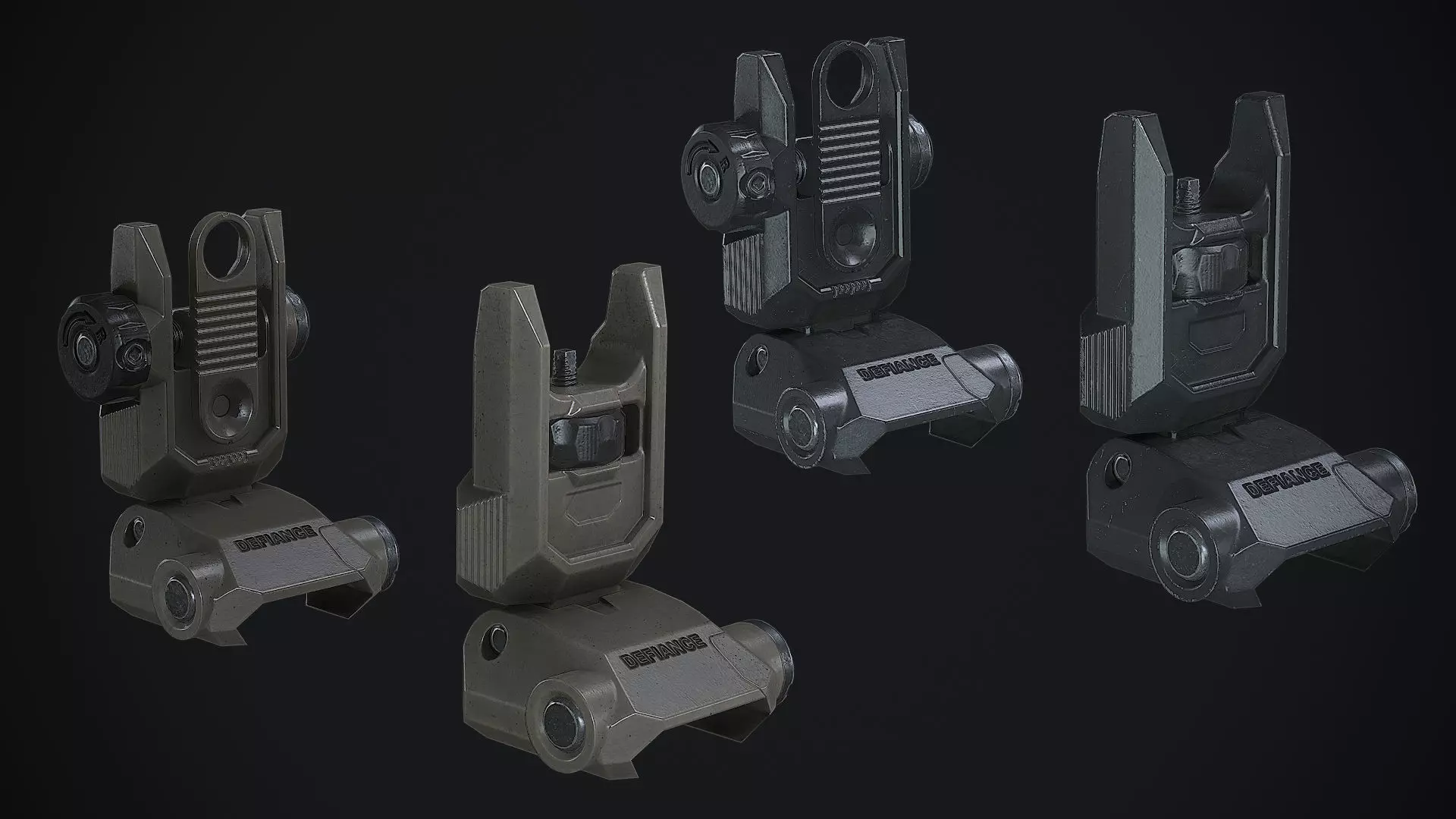 Defiance Low Profile Picatinny Flip Up Sights Low-poly 3D model