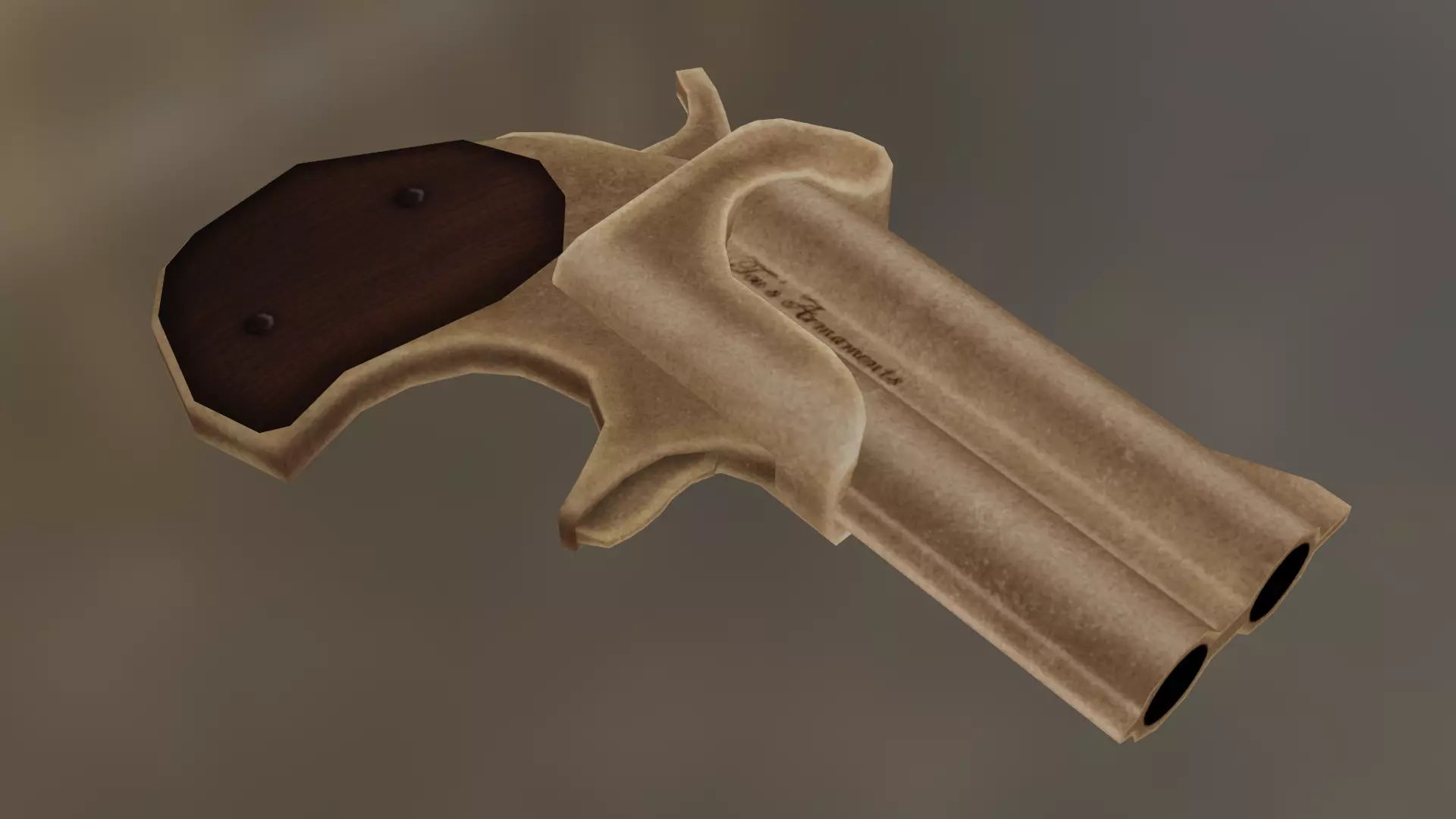 The Derringer Pistol, a gentleman's weapon. A perfect and snug fit to put inside your coat pocket or into your sleeve, this tiny piece of weaponry is sure to save your life. Now, whenever a dastardly gentleman insists that you shake his hand, firmly retort by approaching said man, pulling your Derringer out and shoot him square into his heart.
