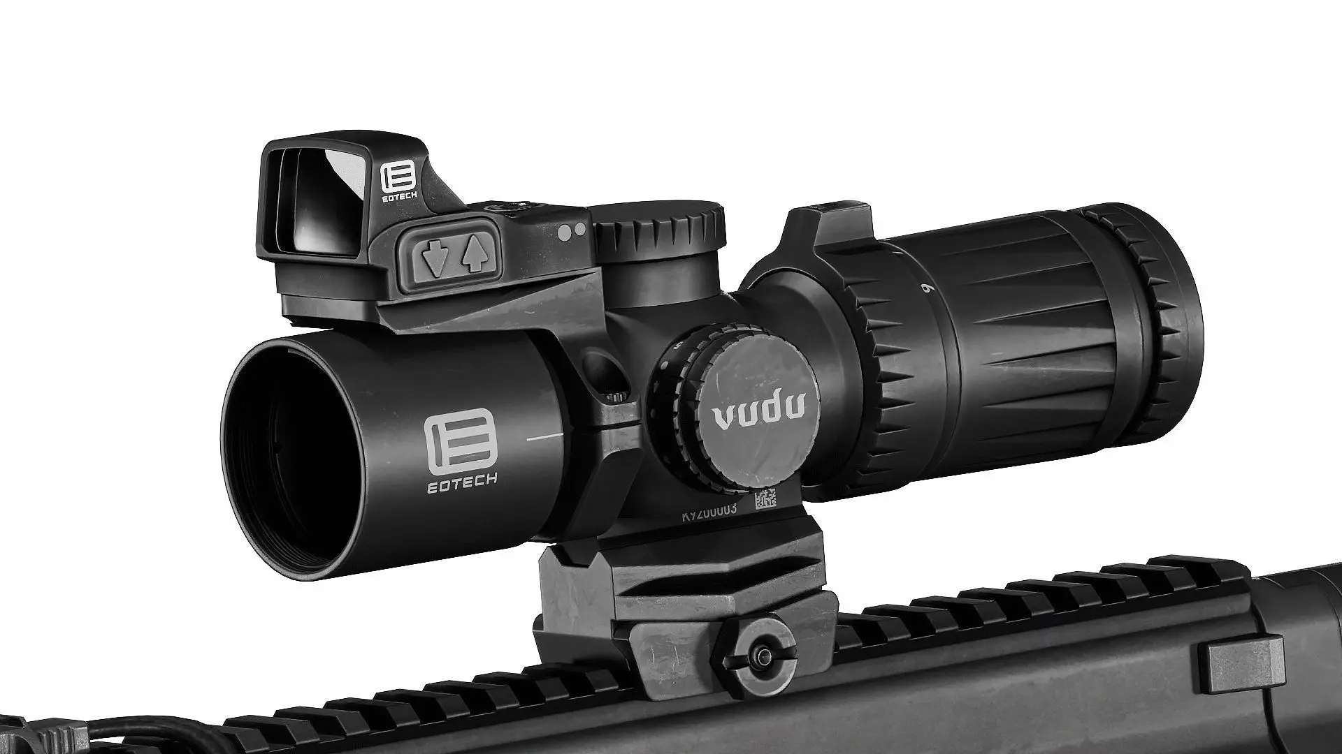 Game-Ready 3D Model inspired by EOTECH's VUDU 3-9x32 Single Focal Plane (SFP) Scope. EFLX Pistol/Red Dot Optic is also included. You can purchase the rifle set up from the renders here: https://www.cgtrader.com/3d-models/military/gun/robinson-armament-xcr-m-rifle