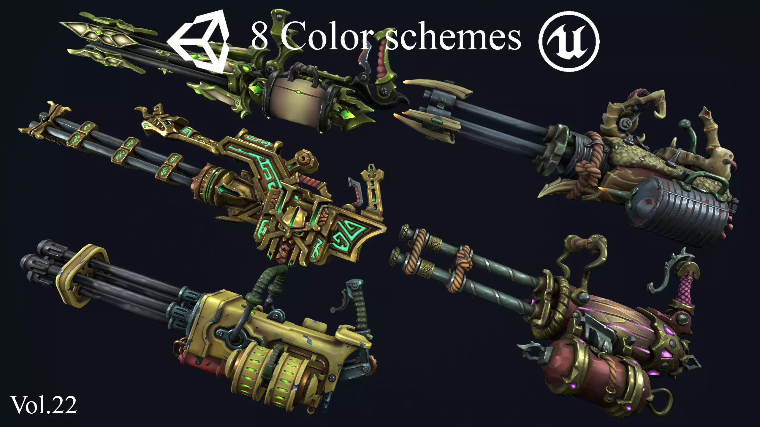Fantasy miniguns collection Low-poly 3D model