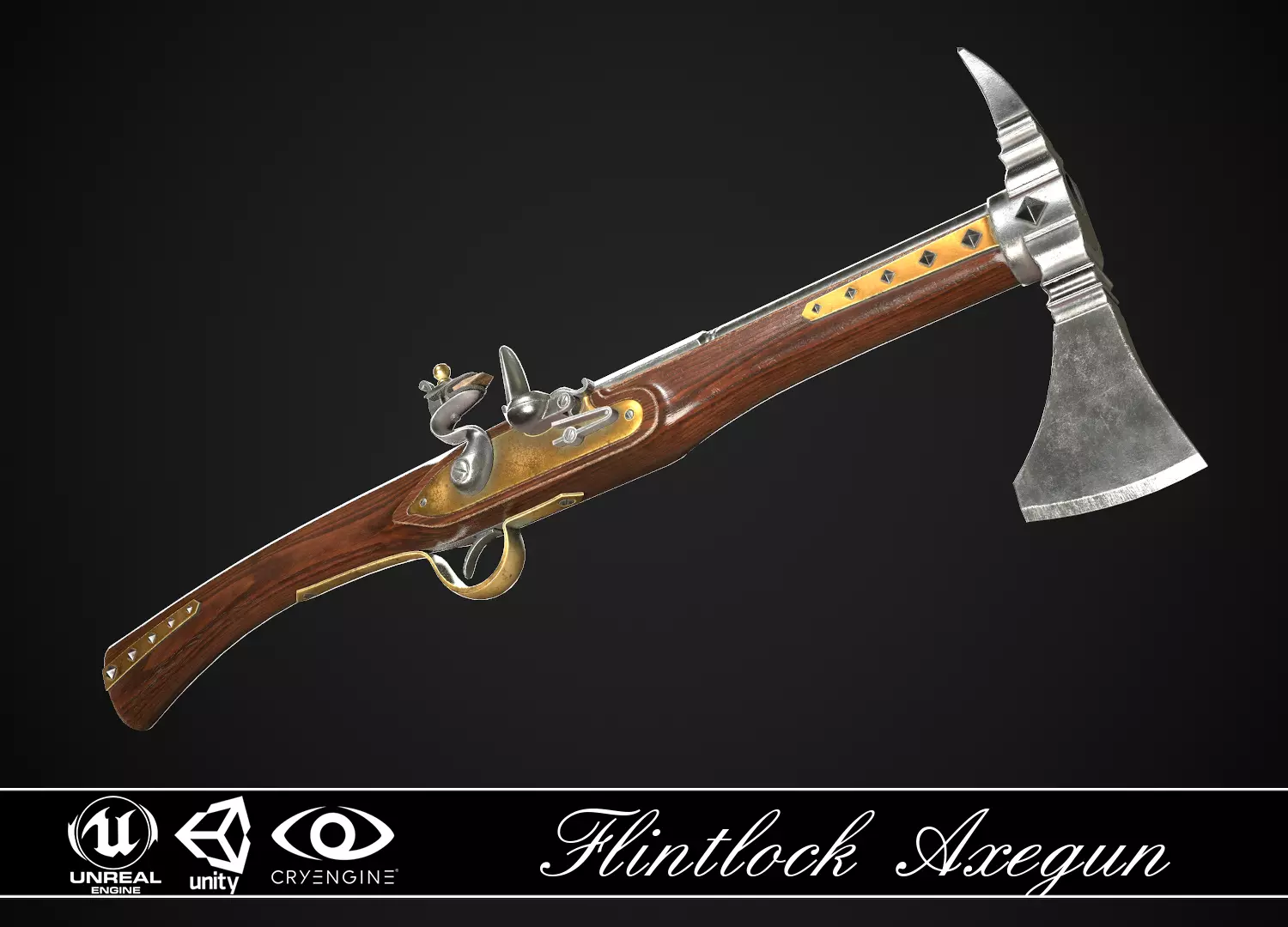 Flintlock Axegun 01 Classic Low-poly 3D model