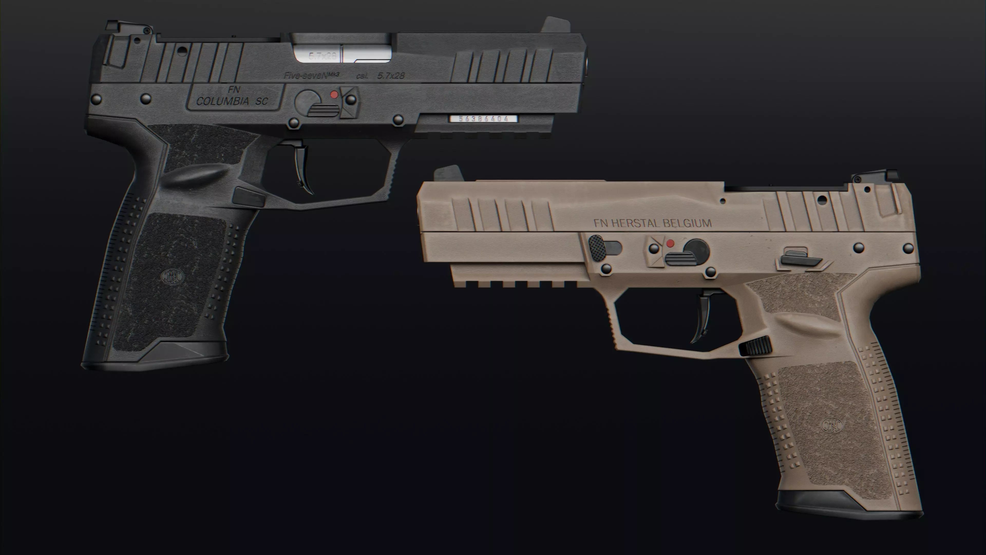Model of FN Herstal Five-seven Mk3. Including Black & Tan Textures in 4K.