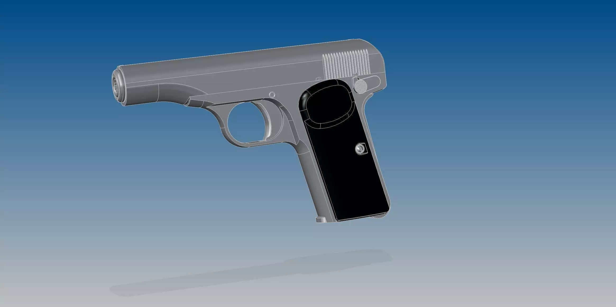 Full assembled model of Belgian pistol FN 1910 and its 7,65x17 mm bullet(also known like 32.ACP)
