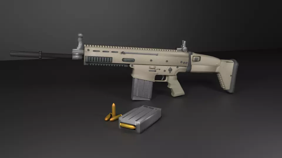 game ready FN-scar modeled in blender render cycles 256 samplesrigged and ready for animatingavailable in 6 file formatobj-fbx-blend-dae-ply-3dsall materials are procedural made in blenderall materials are baked into 2k PBR maps-basecolor-metalness-bump-normal-rougness-AO-mapready to use in unity and other game engineshigh model details with only 7233 verticesyou can get offer price up to 30% automaticallyhope you like it