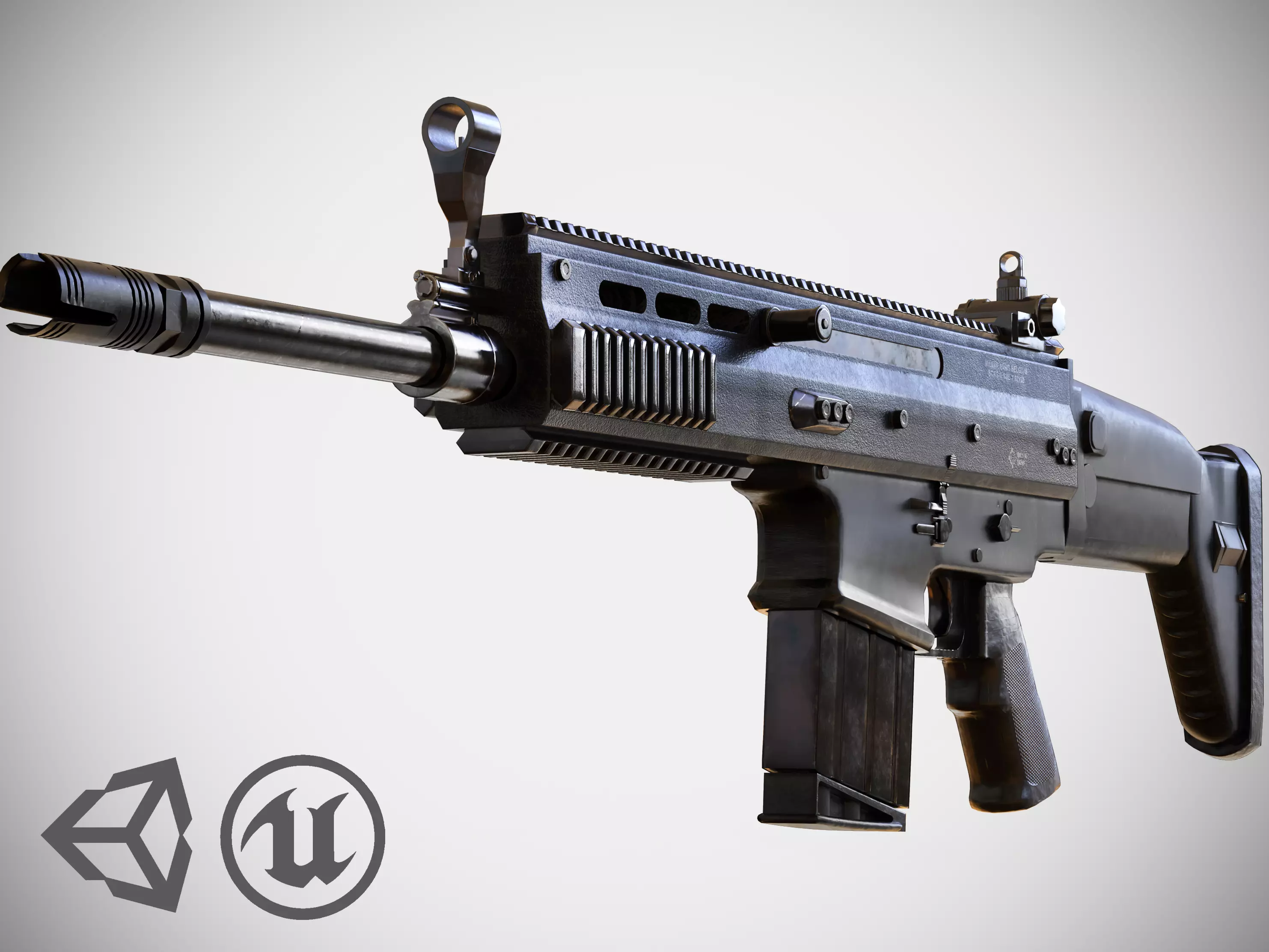 A stunning, highly detailed 3d model of the FN Scar -H (Mk 17 Mod 0) .Realistic: