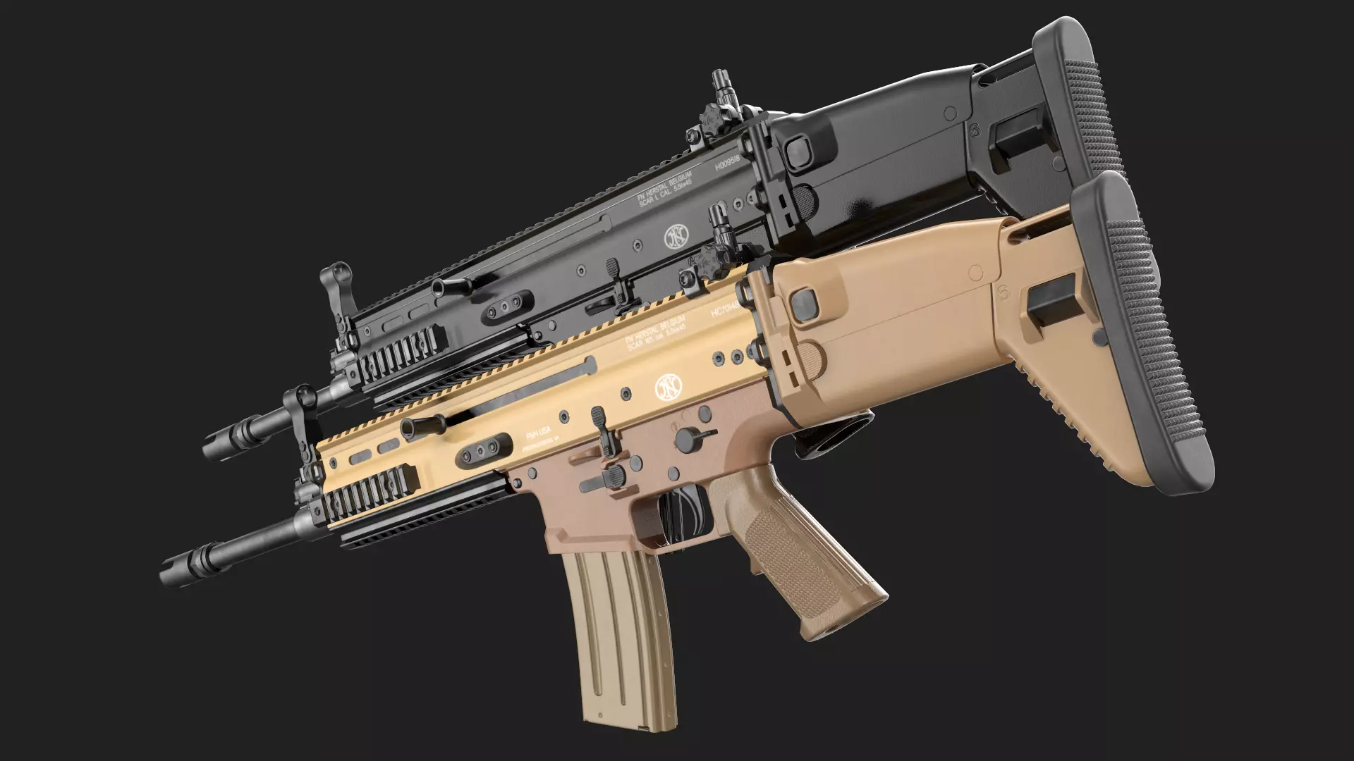 Game ready low (mid)-poly 3D model of FN SCAR-L / 16S FDE + Black (FBX, Maya, Blender, 3ds Max):