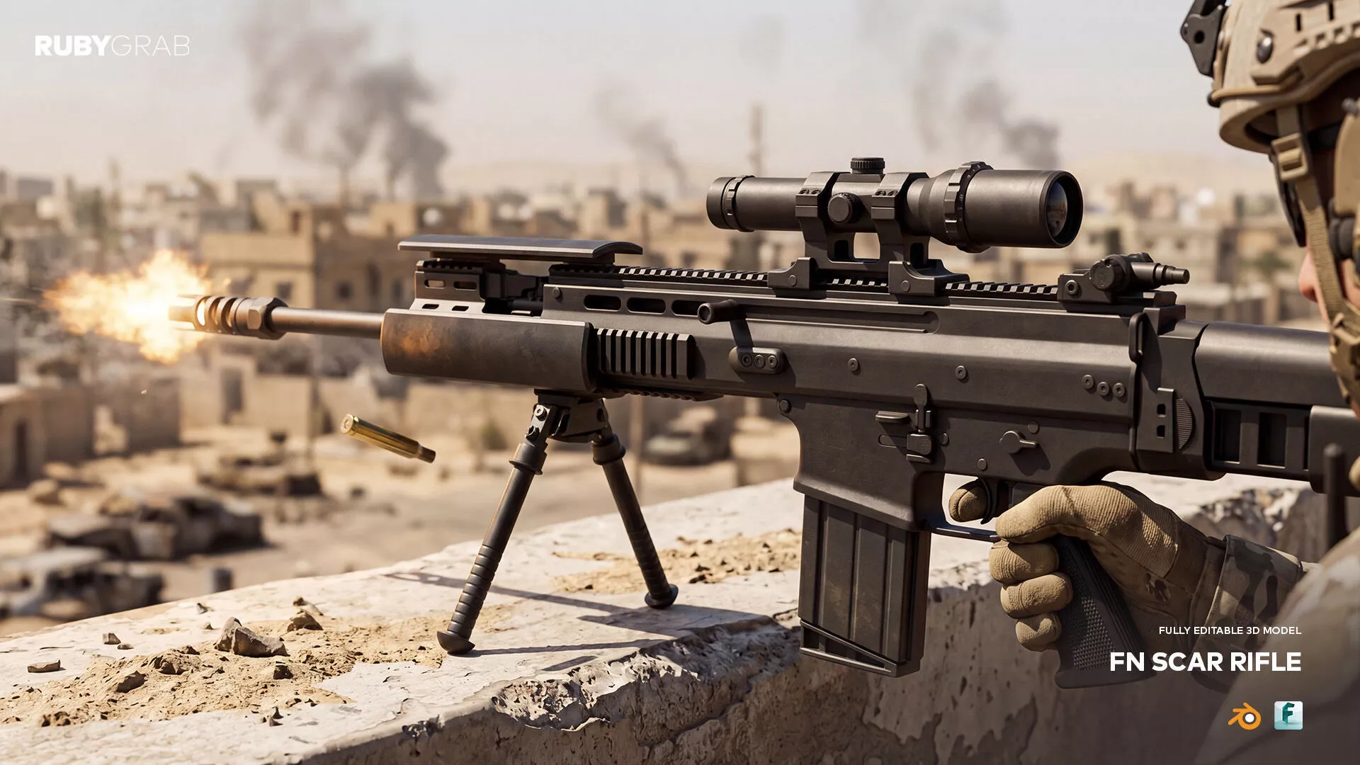 FN SCAR: This high-quality 3D model offers a detailed and fully customizable representation of the FN SCAR rifle, ideal for realistic military or tactical simulations. Equipped with a scope and bipod, this model is perfect for rendering in animations, games, or design projects. Compatible with Blender and other 3D software, it’s ready for professional use and modifications.