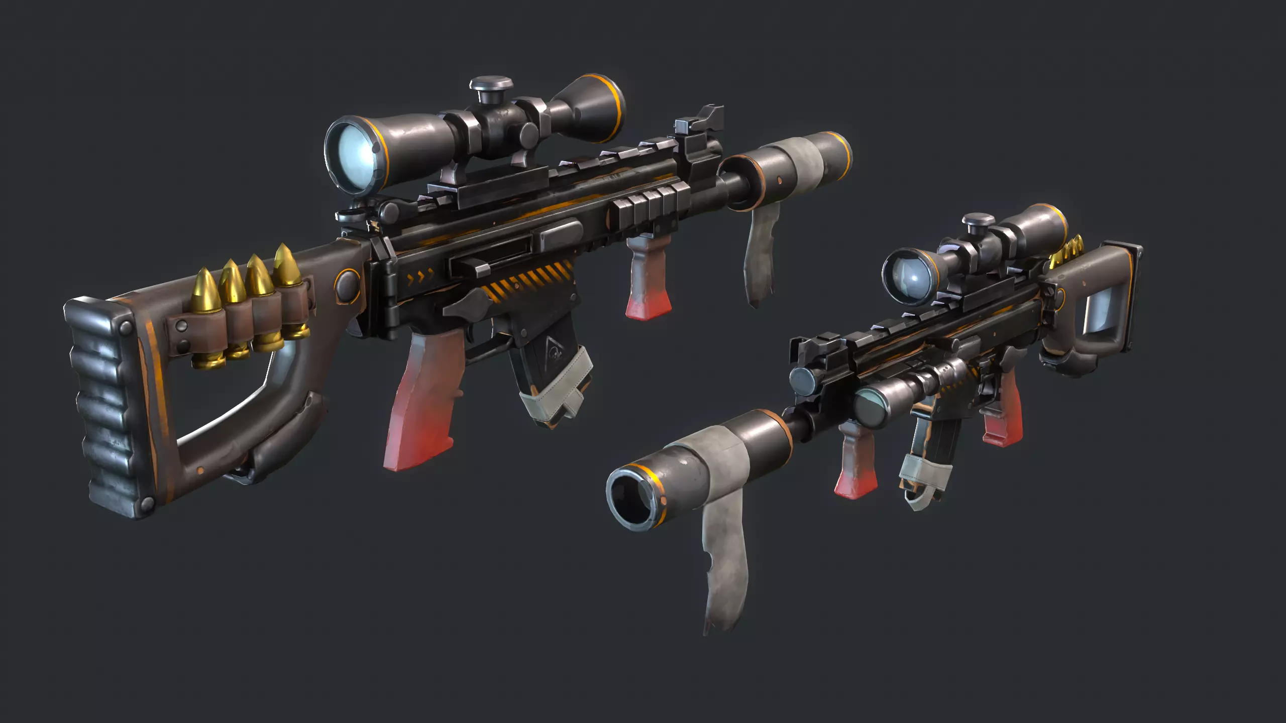 This high quality stylized low poly gun would be ideal in any themed game. Great for game genre like MMORPG, strategy, third person, topdown etc and looks great in cartoon style.