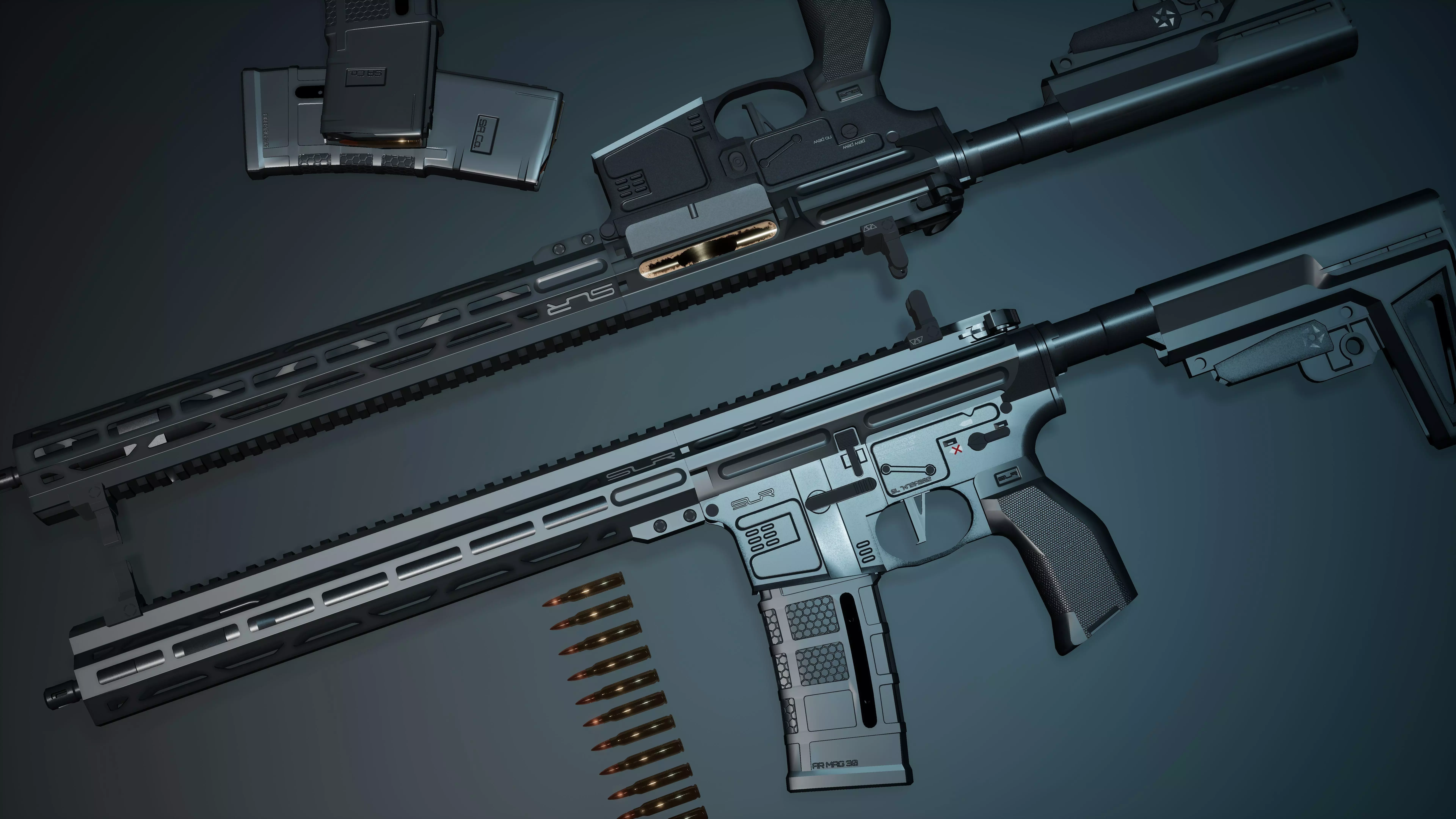 • Separated Parts: Receiver, magazine, stock, barrel, ironsights, etc. (great for animation/customization)