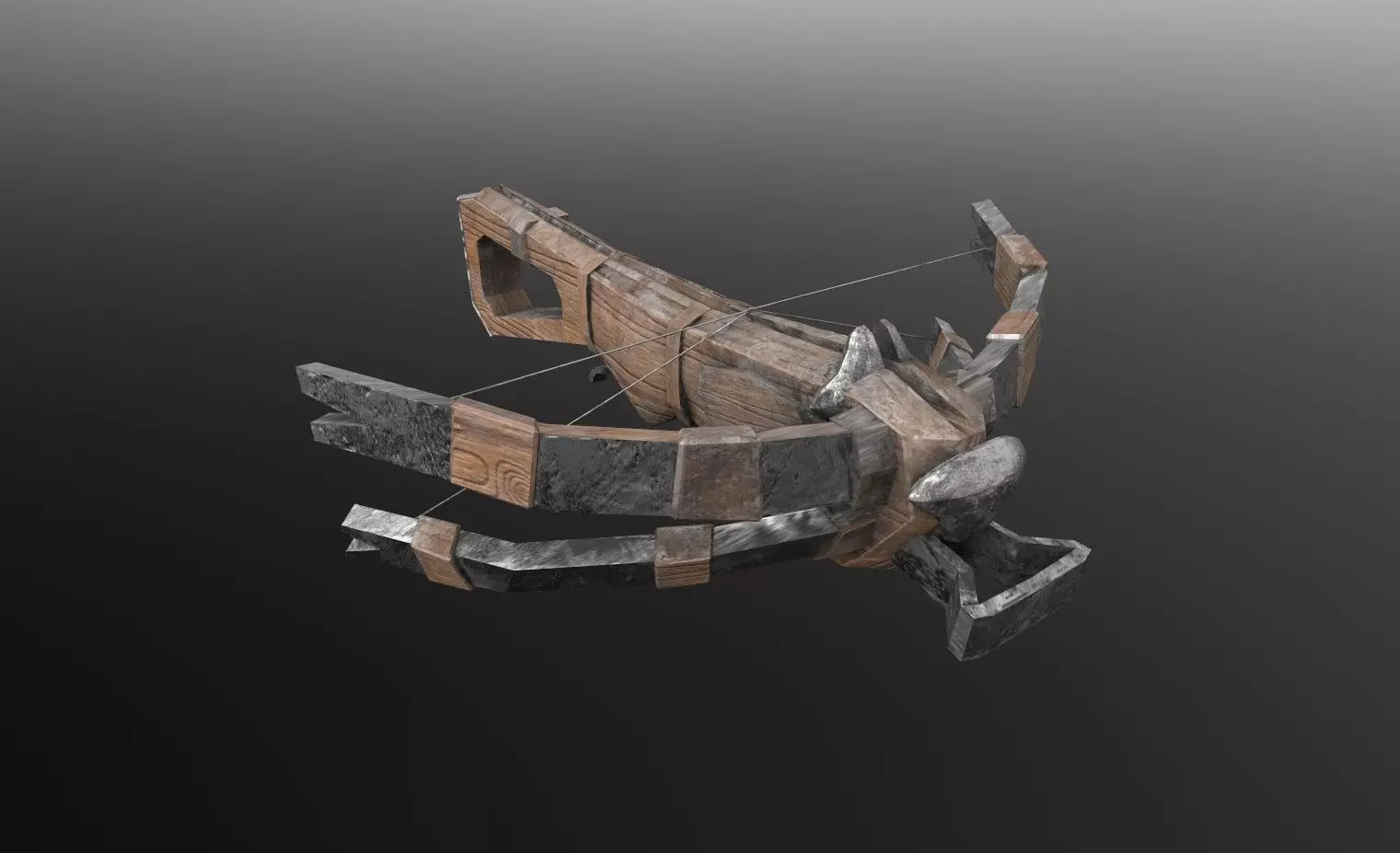 Game-ready crossbow wooden weapon Low-poly 3D model