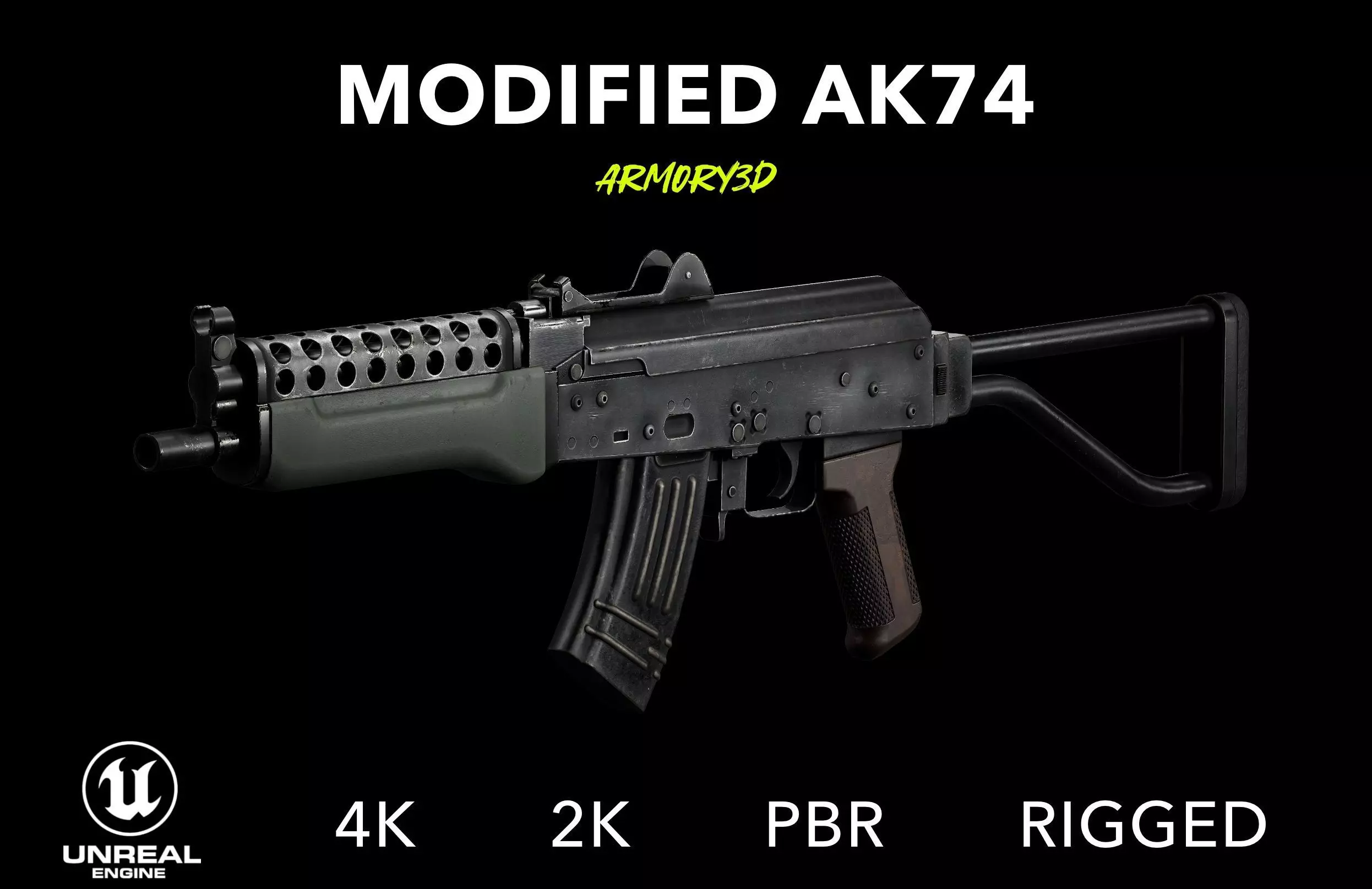 A high-quality, fully rigged AK-74 rifle with an extended barrel modification, designed for real-time games, cinematics, and high-detail visual projects. This model is optimized for performance while delivering AAA-level realism, making it ideal for tactical shooters, survival games, and modern combat environments.