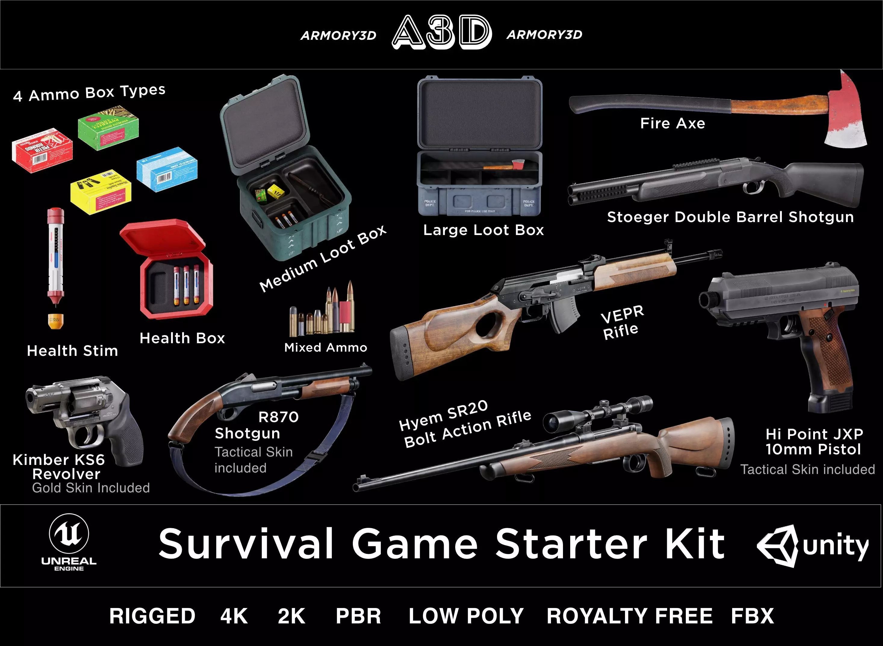 Game Ready Survival Game Starter Kit PBR Rigged Low-poly 3D model