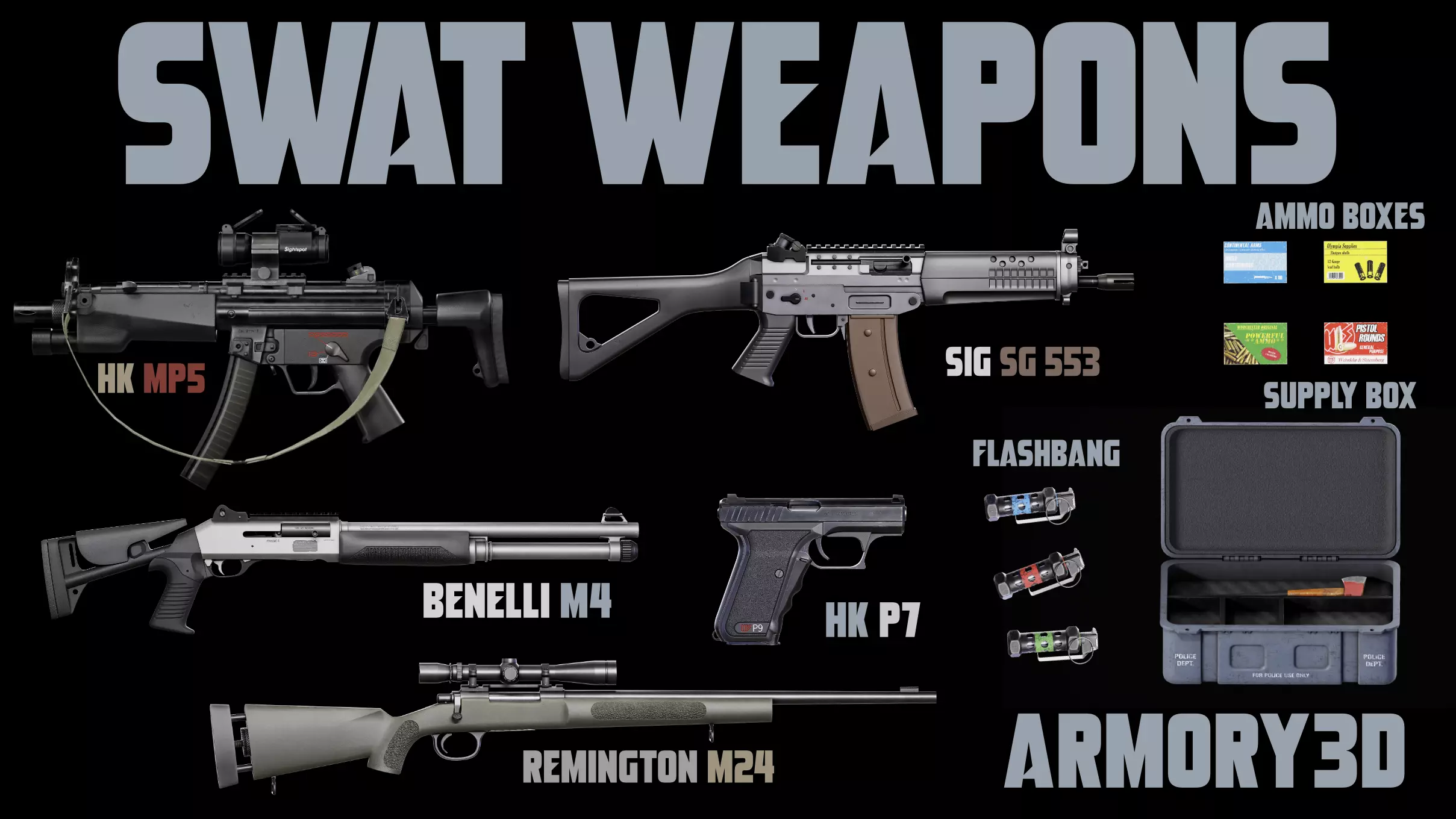 Game-Ready Models: Each item is fully rigged and optimized for immediate use in your game engine of choice.File Formats: Includes rigged FBX files for easy import, along with Unity and Unreal Engine-compatible textures.Low Poly Design: Ensures optimal performance without compromising on quality, suitable for VR and AR applications.Hyper-Realistic PBR Textures: Designed to enhance visual fidelity with realistic lighting and shading, delivering a true-to-life feel.Elevate your game’s tactical arsenal with this essential SWAT Weapons Pack, designed to deliver both visual impact and seamless functionality. Whether you're creating a modern-day shooter or a tactical simulation, this pack provides the tools you need to create an unforgettable experience. Equip your players with the best in SWAT firepower with our SWAT Weapons Pack!