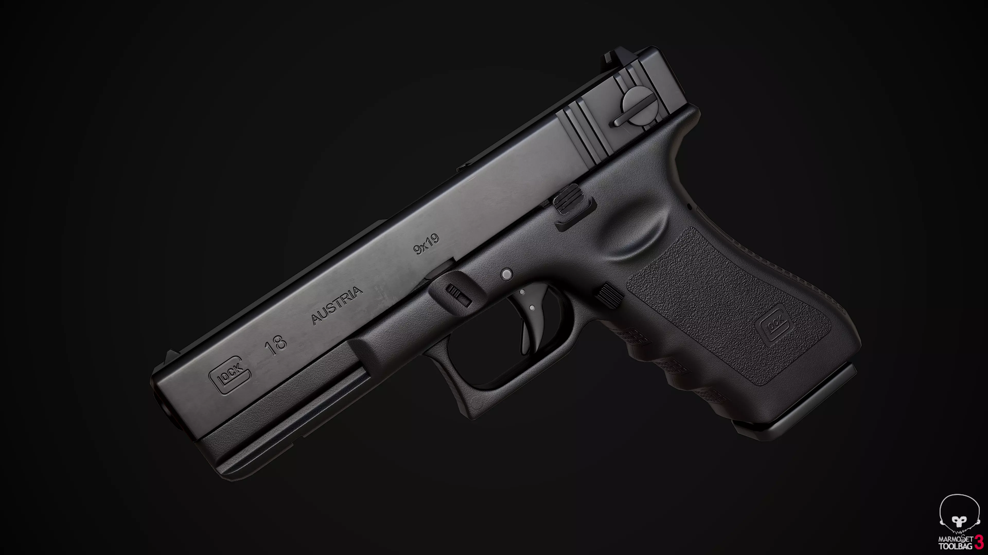 Low poly model of Glock 18.Download contains .obj, .fbx, .mtl, Substance Painter and Blender files. (both low and high poly model in Blender file)4k textures - base color, roughness, metallic, ambient occlusion, normal (can export more different textures from Substance Painter file)Glock - 3200 vertices, 6000 trianglesMagazine - 273 vertices, 522 trianglesBullet - 400 vertices, 796 trianglesBE AWARE - glock, magazine and bullet each use an individual UV layout and textures (small magazine inside of glock uses same textures as glock).