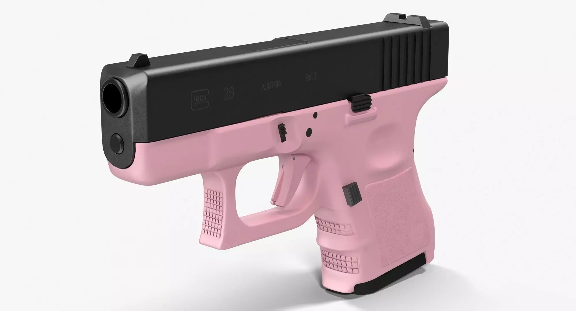 This Glock 26 Pink is a high quality, photo real model that will enhance detail and realism to any of your rendering projects. File units - cm. The model has a fully textured, detailed design that allows for close-up renders, and was originally modeled in 3ds Max 2013 and rendered with V-Ray.