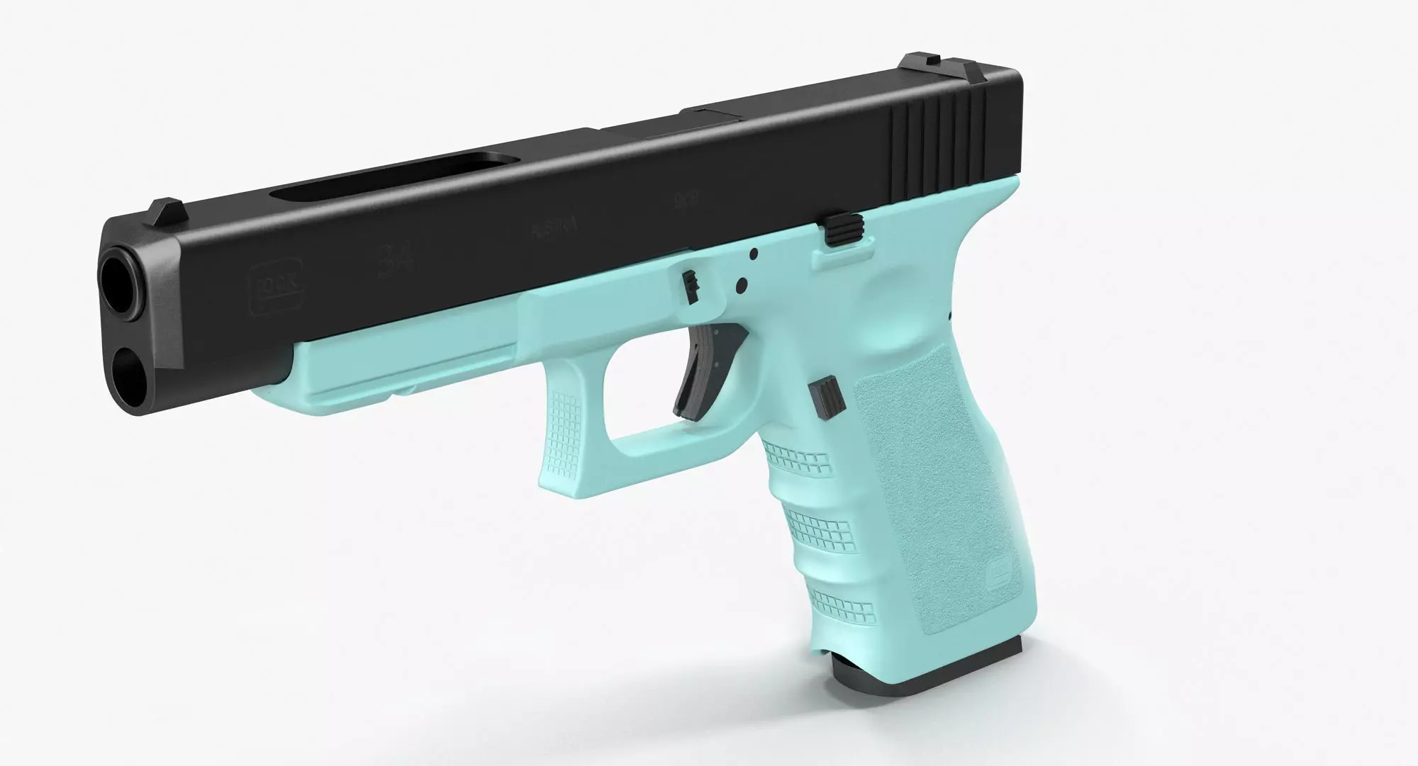 This Glock 34 Blue is a high quality, photo real model that will enhance detail and realism to any of your rendering projects. File units - cm. The model has a fully textured, detailed design that allows for close-up renders, and was originally modeled in 3ds Max 2013 and rendered with V-Ray.