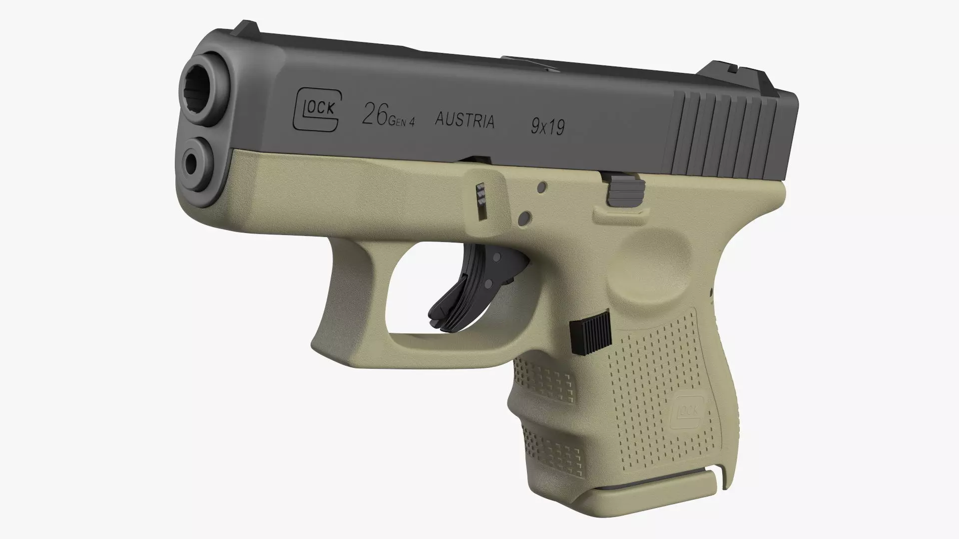 Glock G26 Sub Compact 9mm Pistol is a 3d model of subcompact 9mm pistol that is known for its compact size, lightweight design, and high level of reliability.