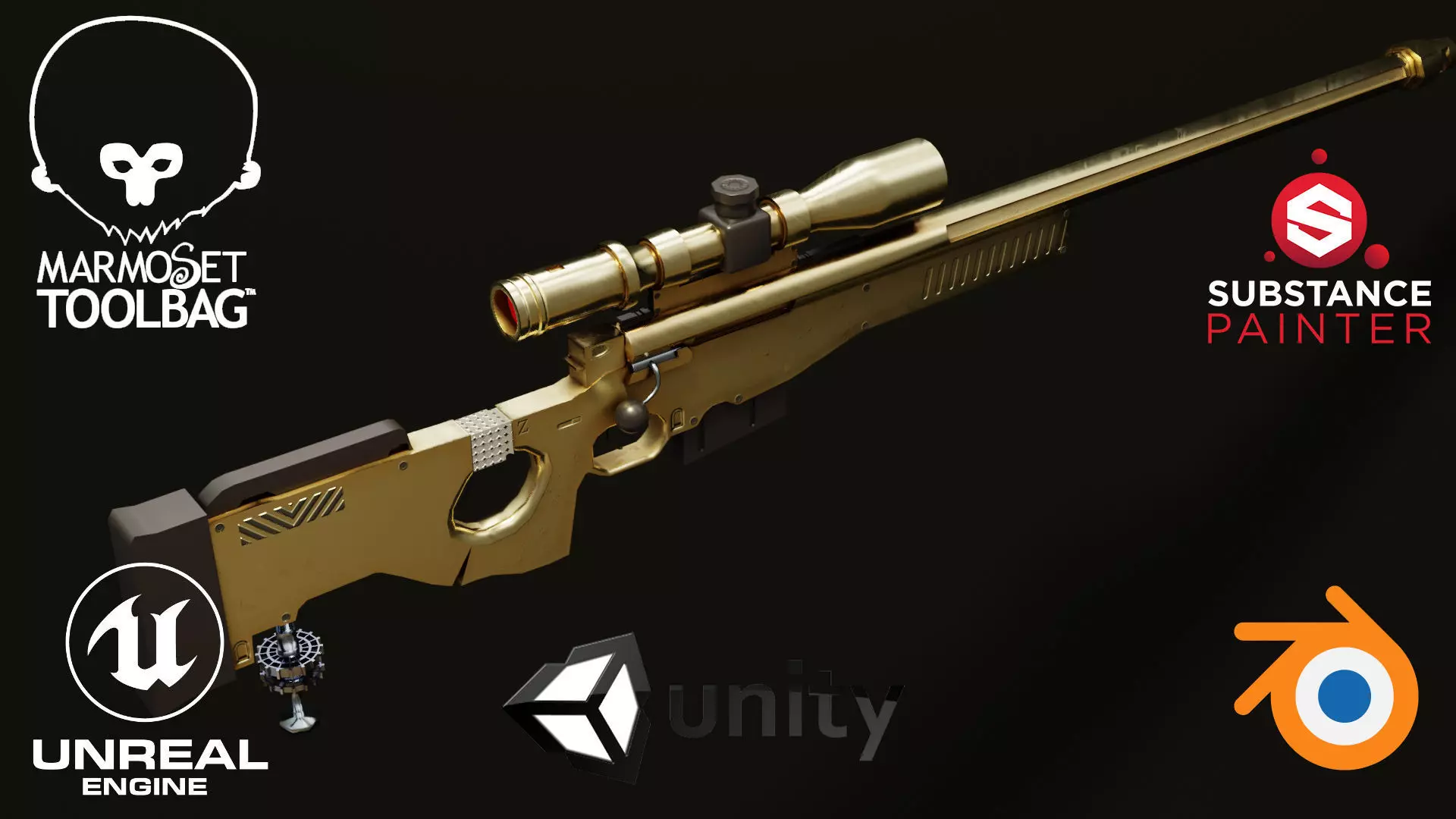 Golden AWP Sniper Rifle game ready with bonus asset Low-poly 3D model