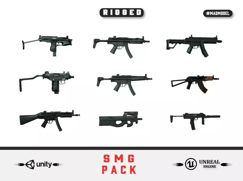 guns rigged Smg Pack 3D model