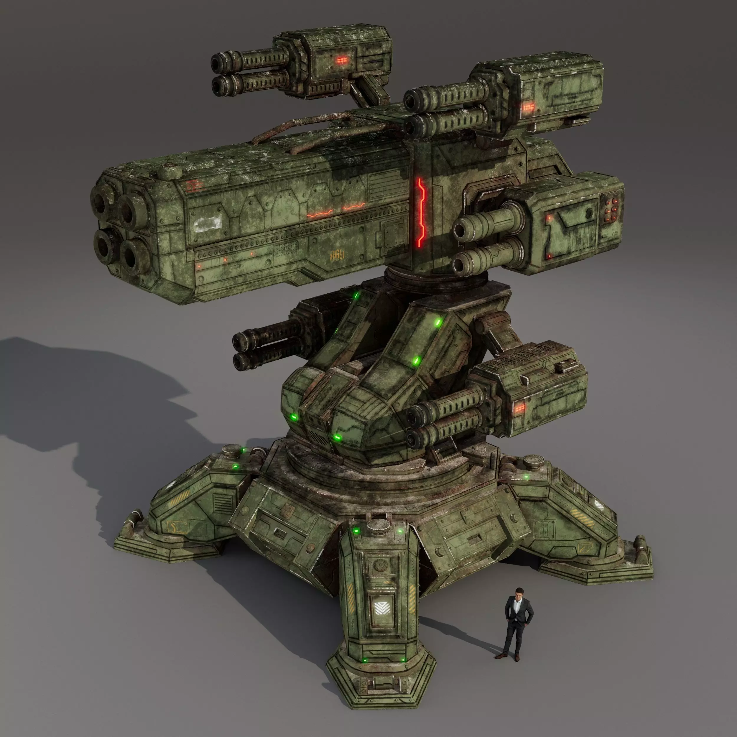 Heavy Sci-Fi Urban Defense Turret - PBR Game Ready Low-poly 3D model