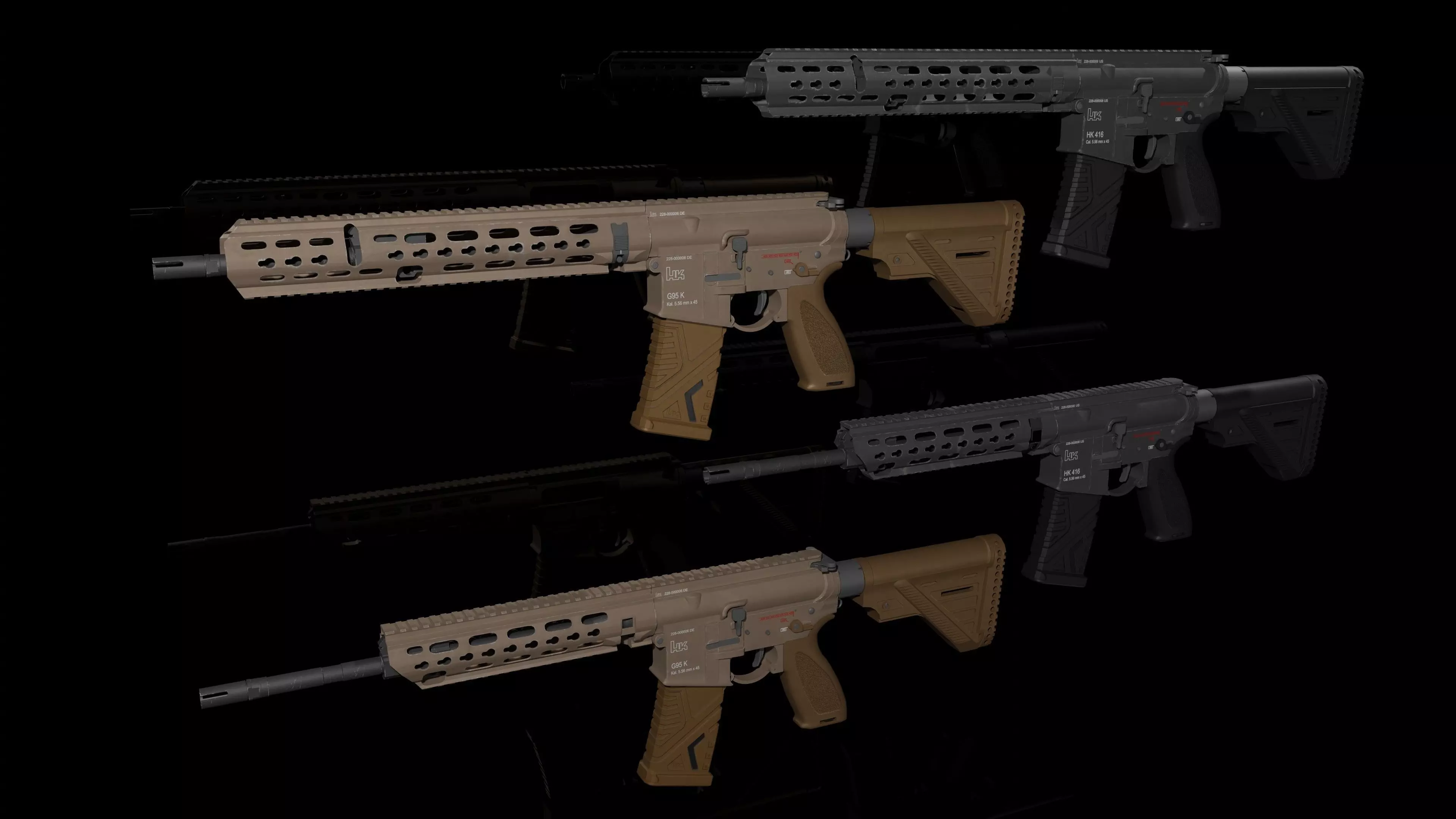 Model of Heckler & Koch G95K.Including Gunemtal Black & RAL8000 (Tan) in 4K, UE4 Format. (NOT PBR)