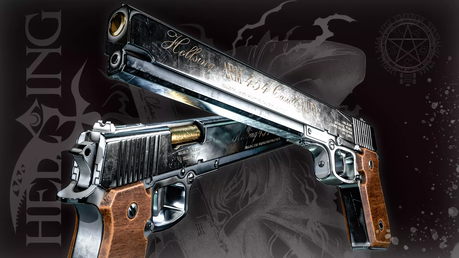 The Hellsing ARMS .454 Casull Auto is a very powerful handgun and one of the first personal firearms wielded by Alucard. This is an attempt to recreate weapons from one of my favorite anime Hellsing) https://www.artstation.com/artwork/m8R30e