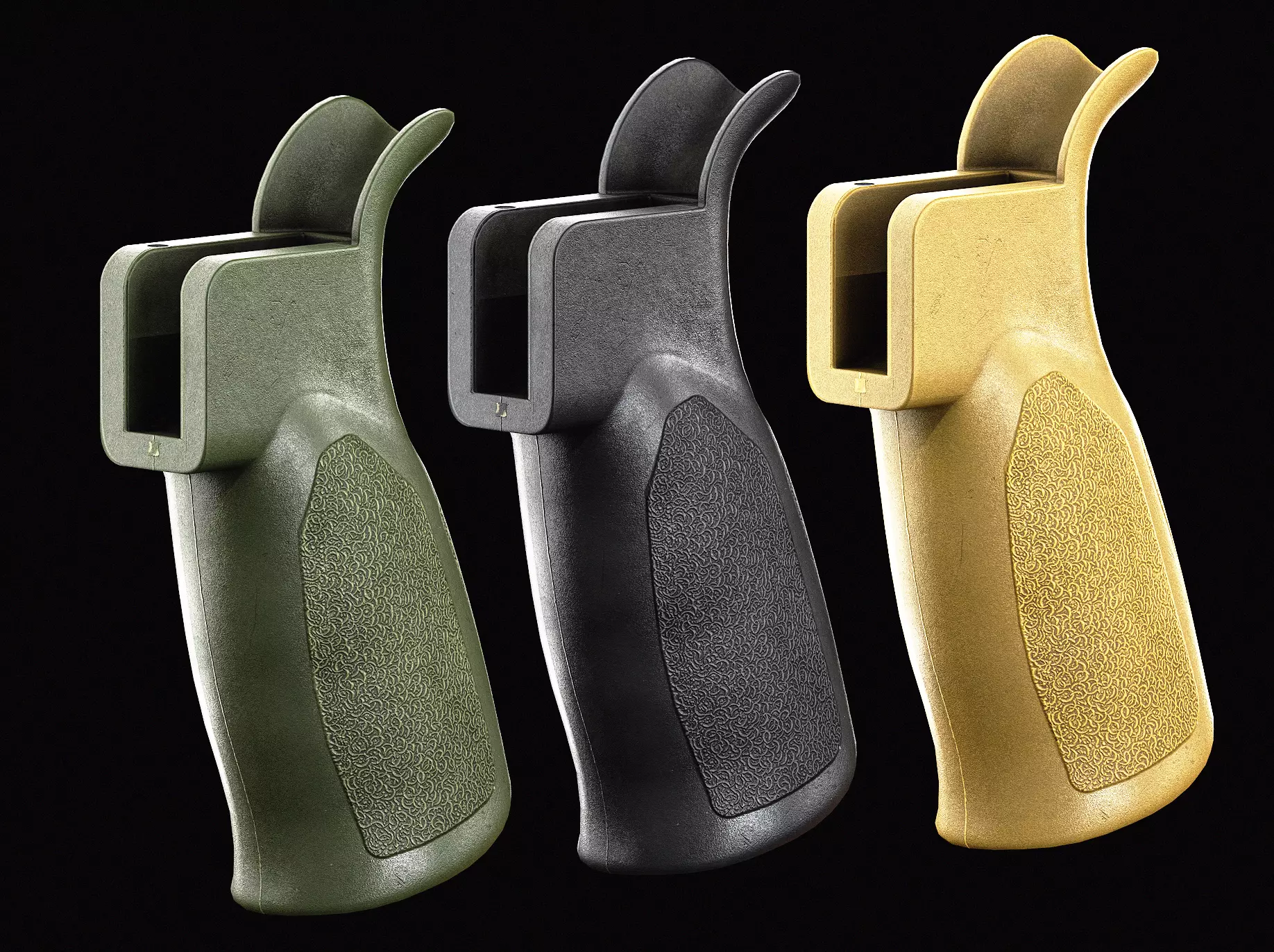 Model of a HK 416 A5 Grip, the model has a 4k material and 3 color variations.