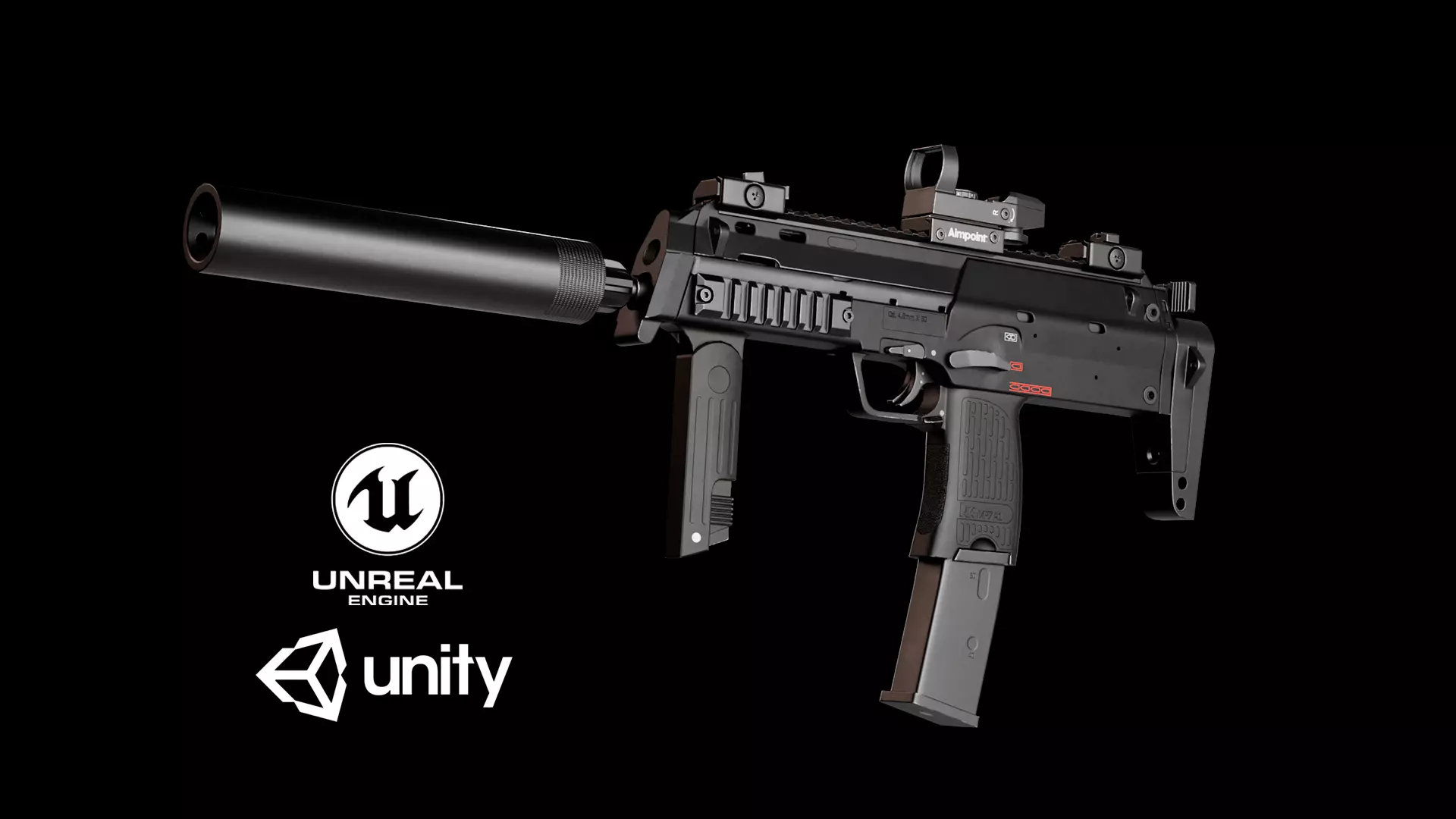 Unity textures: AlbedoTrabsparency, MetallicSmoothness, Normal, Emissive (for sight reticle)