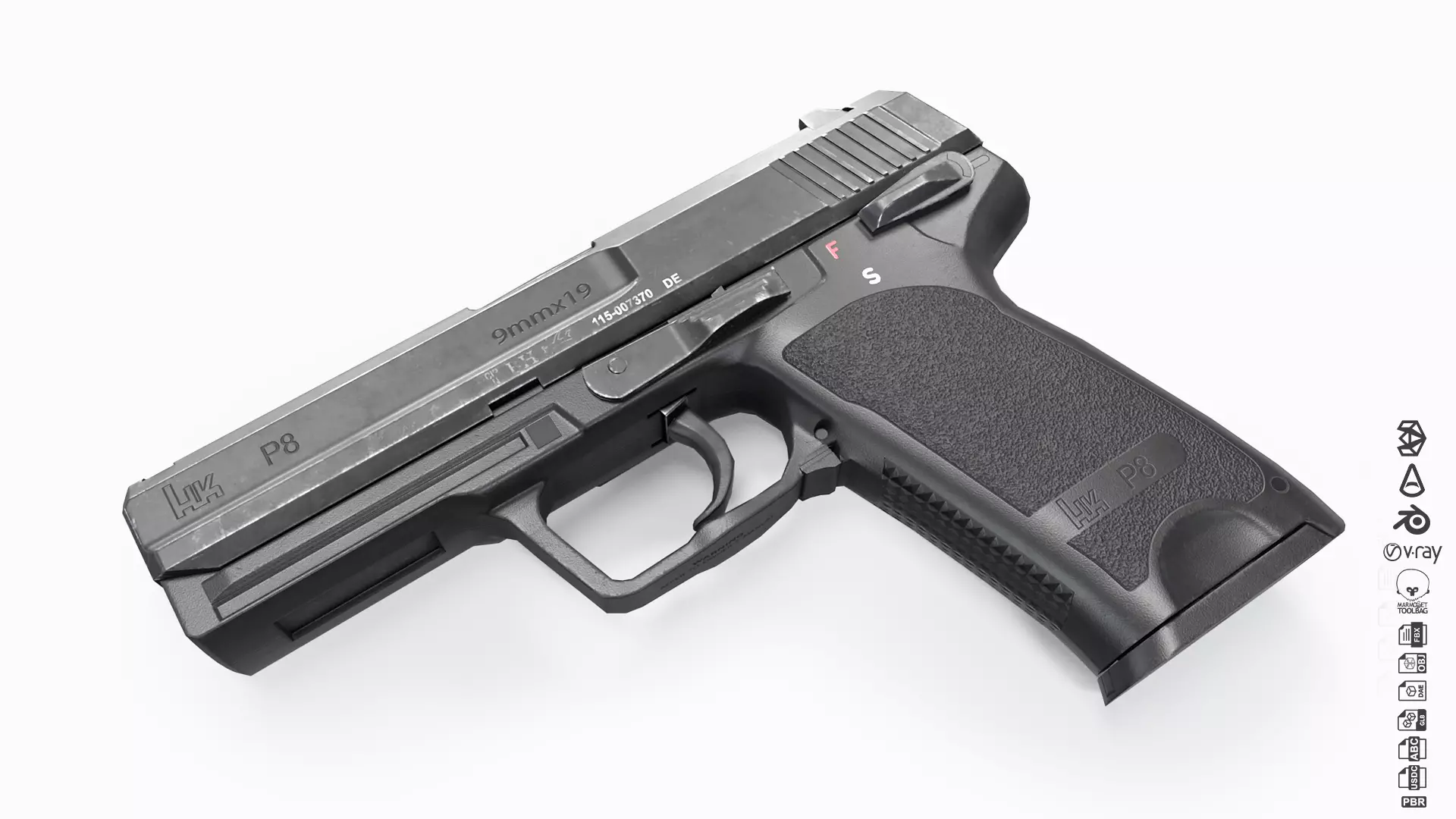 Heckler Koch P8 Pistol Low-poly 3D model