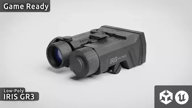 Game Ready 3D model of a Holosun IRIS GR3, A Laser Sight developed to be professional grade. Includes the Laser, and a Pressure Pad.