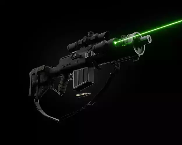 - Detailed Attachments: Comes fully equipped with a scope, laser sight, tactical rail system, carrying sling, and a uniquely modeled cheek-rest pouch.