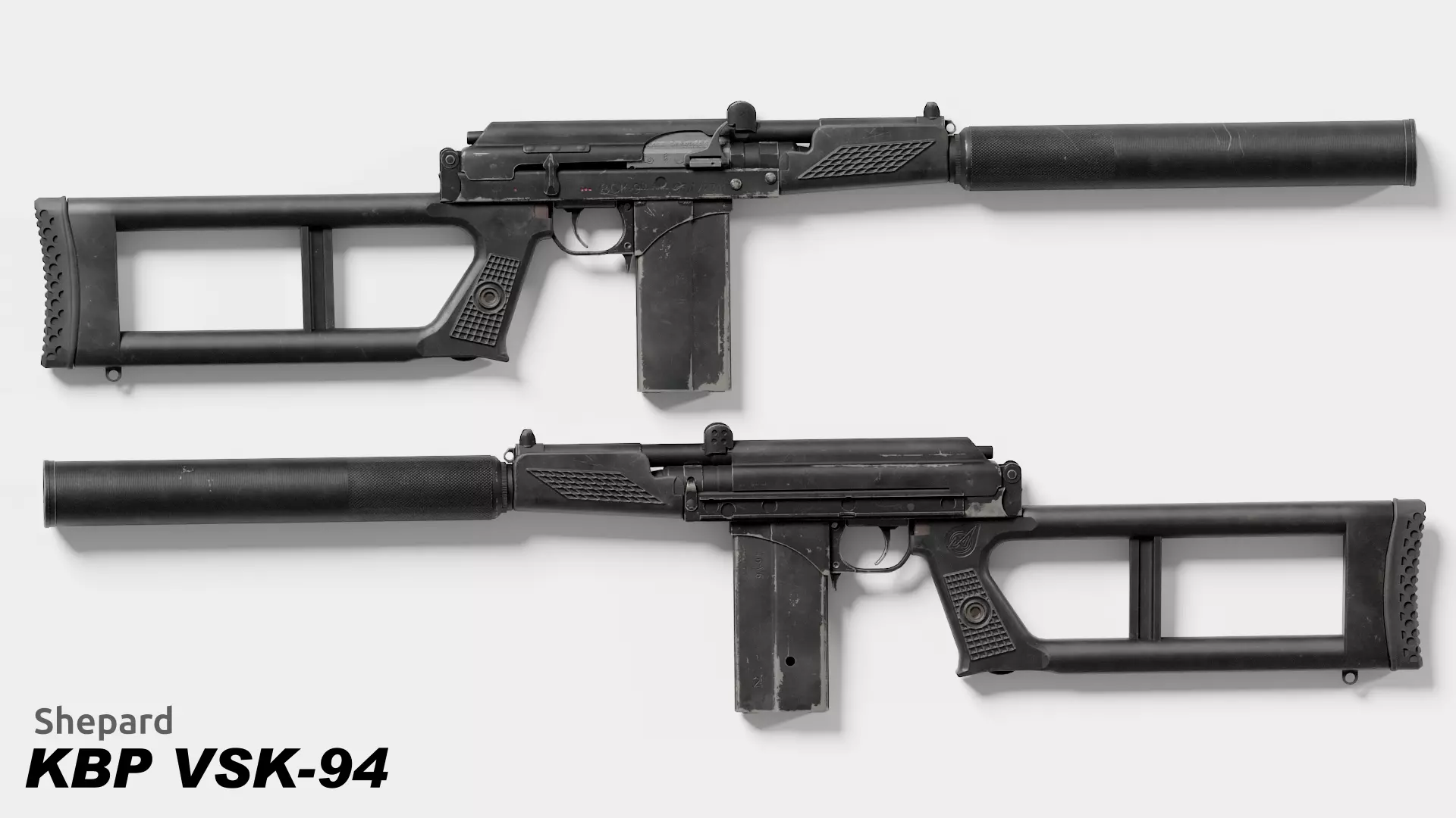 Game Ready 3D Model of a VSK-94, a Budget Russian Special Sniper Rifle chambered in 9x39mm and designed for close quarters use, comes with removable suppressor