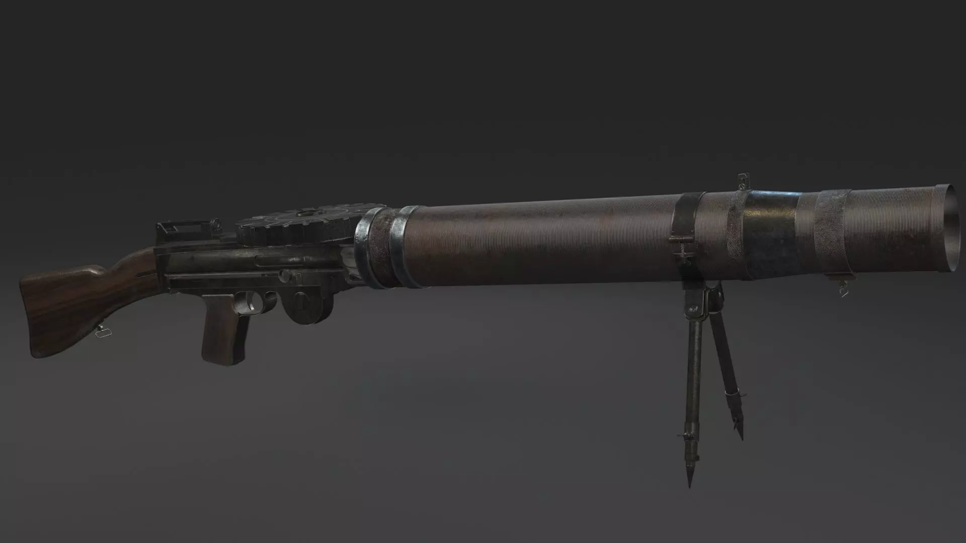 A 3D model of a WW1 Lewis Machine Gun. PBR Metal-rough workflow used. All maps/texture are included.