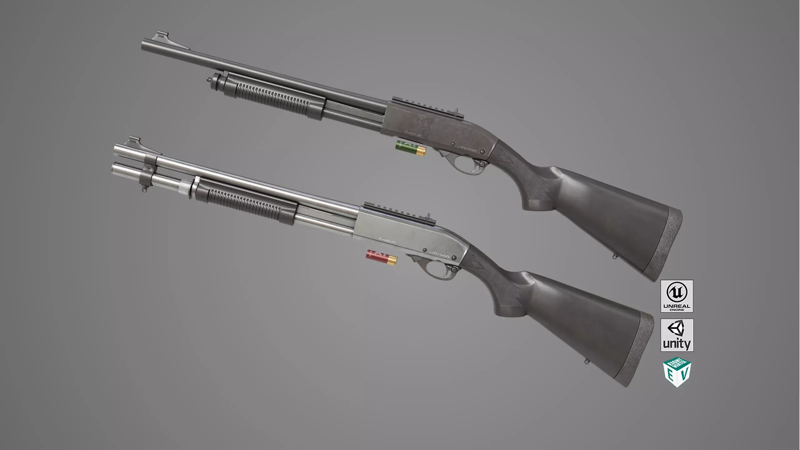 The Photorealistic 3D model of Shotgun 01 Black and Silver With Single Material. This model is suitable for any visual production - broadcast, high-res film close-ups, advertising, games, design visualization, forensic presentation, etc