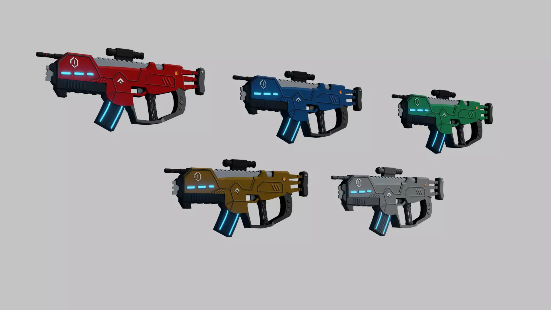 This is 3D model of Low poly Sci-Fi Gun.This model is made with Blender 2.92.All the previews are rendered with EEVEE Render engine.The models are textured with PBR textures.Since the model is Game ready, It can be imported to any of Game engine.This model can be use to your FPS games.This Low poly Sci-Fi Gun 3D model is available in 5 Colors. (Red, Green, Blue, Yellow and Grey ).The pack has UV Layout also. So that you can edit it.