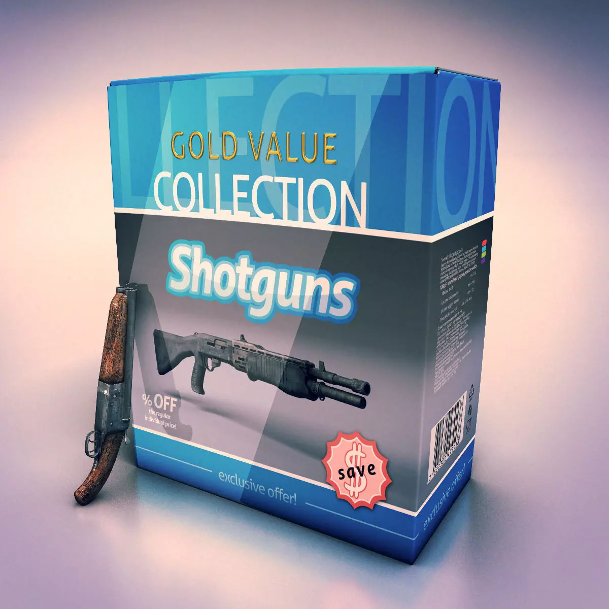 Included: Benelli M4/M1014 (7,514 triangles) Franchi SPAS-12 (5,960 triangles) Sawn-Off (3,857 triangles) Armsel Striker (5,955 triangles) Saiga-12 (5,632 triangles)