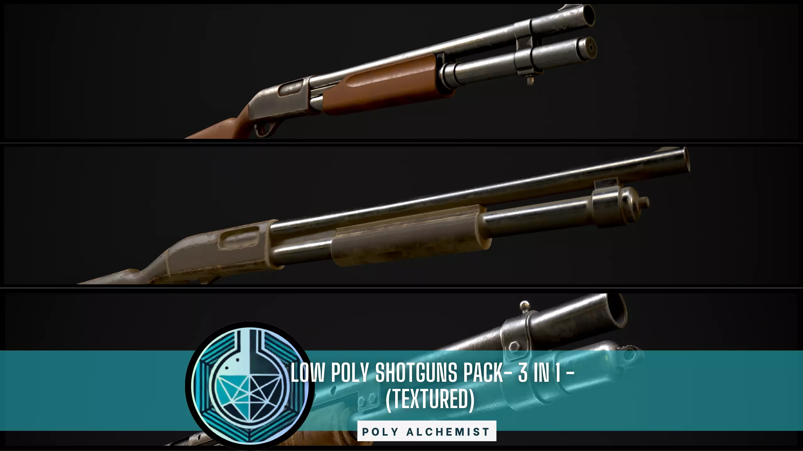 Pack containing 3 low poly shotguns that are perfectly suitable for lowpoly mobile games.